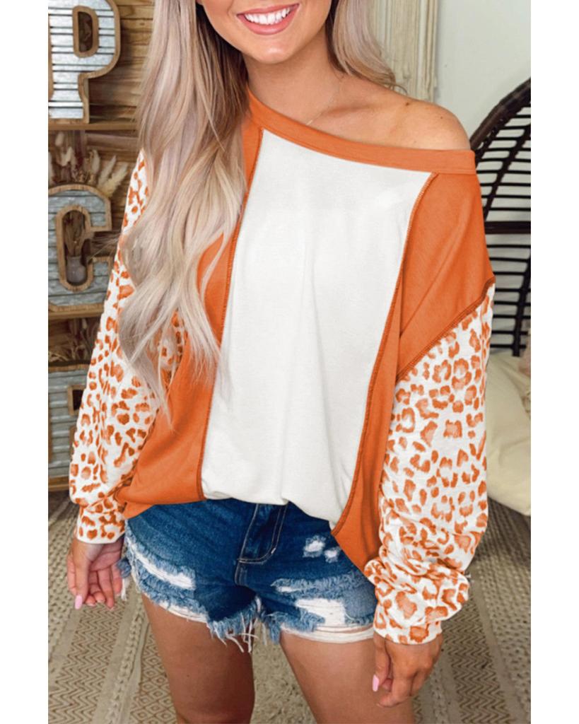 Azura Exchange Оранжевый топ с леопардовым принтом и рукавами в стиле пэчворк — купить товар онлайн с бесплатной доставкой до всему миру!