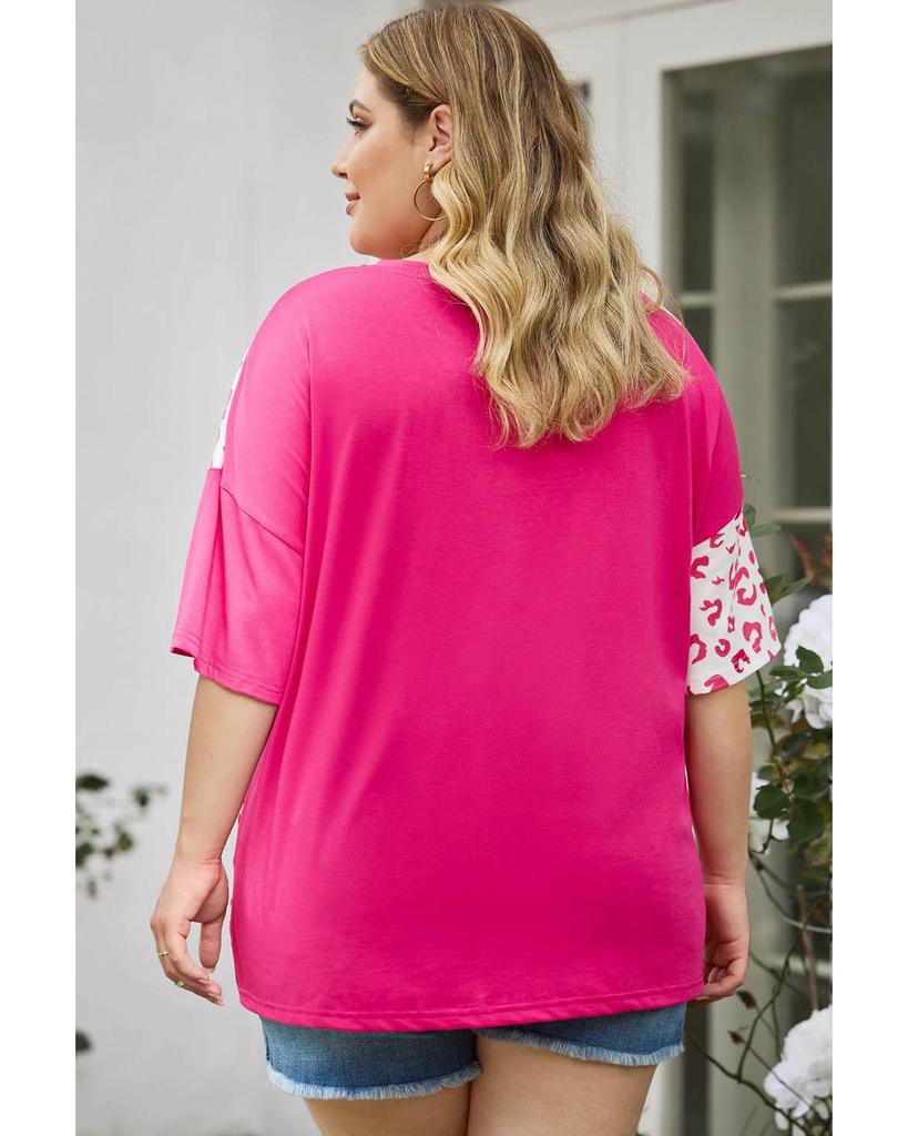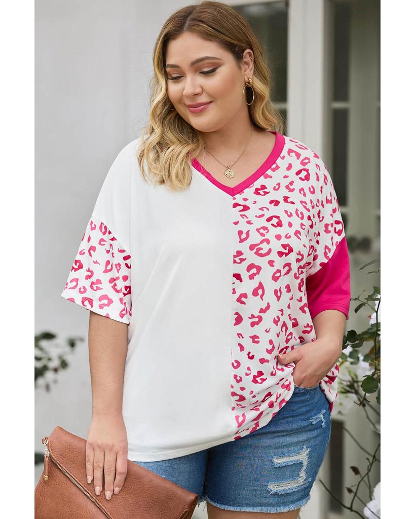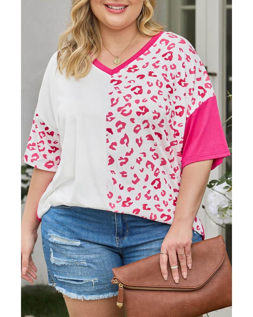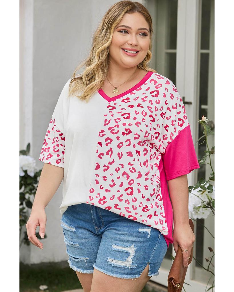 Azura Exchange Топ с короткими рукавами в стиле пэчворк с леопардовым принтом