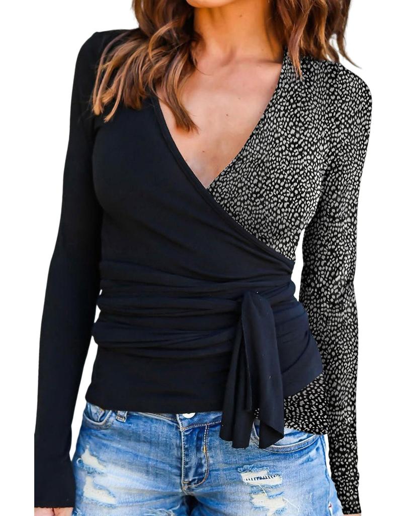 Azura Exchange Черный топ с длинными рукавами и контрастным принтом, завязками по бокам