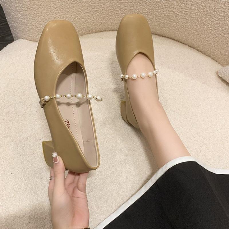 Туфли-бобы с квадратным носком для женщин на весну, новый стиль с неглубоким носом и толстым каблуком — купить товар онлайн с бесплатной доставкой по всему миру!