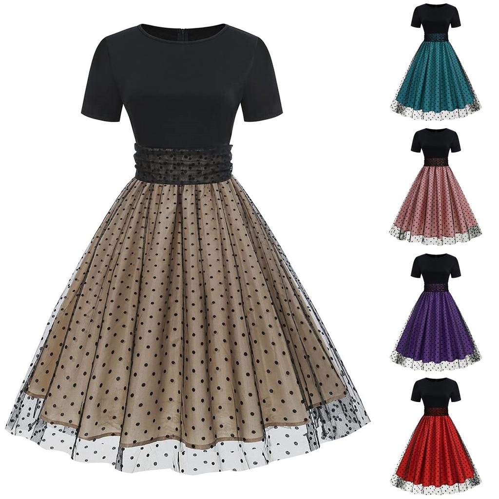 Платья в стиле рокабилли, женское сетчатое платье из тюля в горошек в стиле 50-х годов, летнее коктейльное платье в стиле свинг — купить товар онлайн с бесплатной доставкой по всему миру!