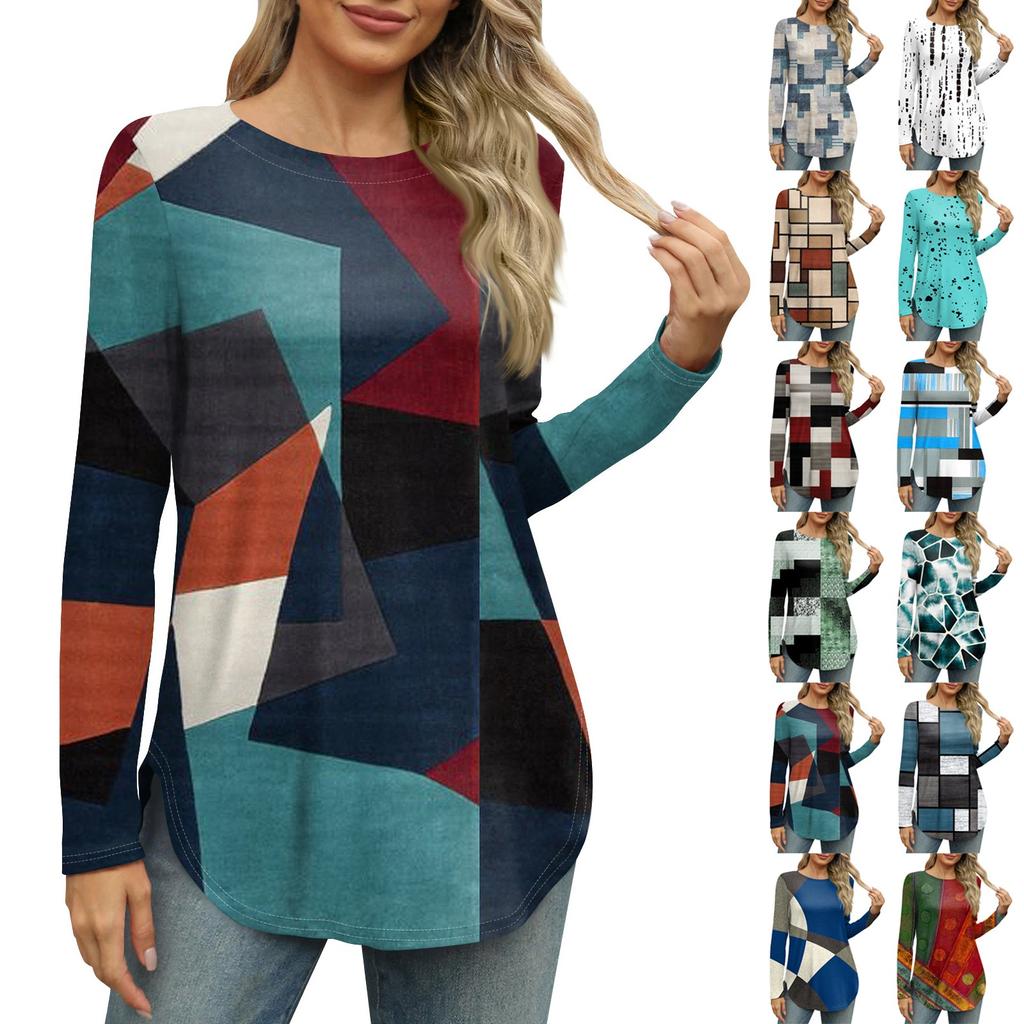 Женские рубашки с длинным рукавом и круглым вырезом, базовые свободные туники с боковым разрезом, повседневные рубашки с цветочным принтом — купить товар онлайн с бесплатной доставкой до всему миру!