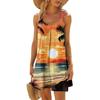 Женское модное летнее пляжное повседневное милое платье на бретельках без рукавов с принтом