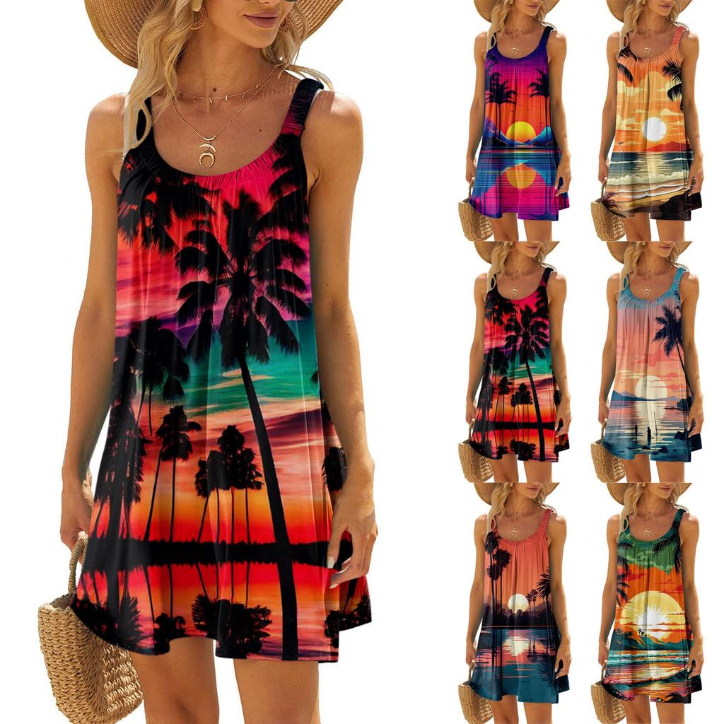 Женское модное летнее пляжное повседневное милое платье на бретельках без рукавов с принтом — купить товар онлайн с бесплатной доставкой до всему миру!