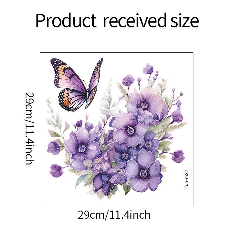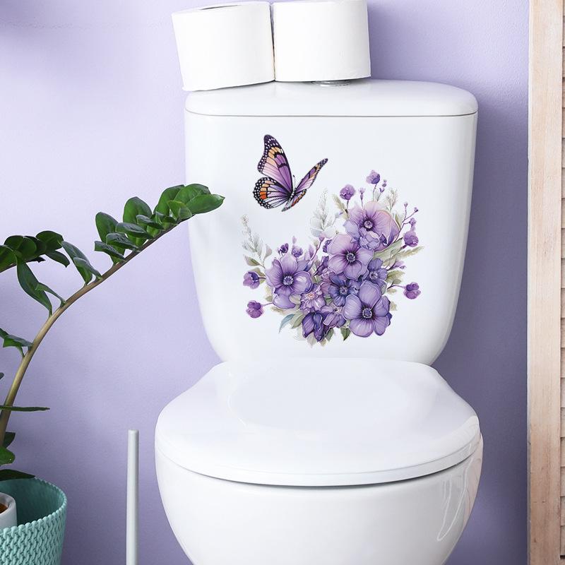 Фиолетовые растения Цветы Бабочки Наклейки на туалет Ванная комната Наклейки на стену в ванной Самоклеящиеся