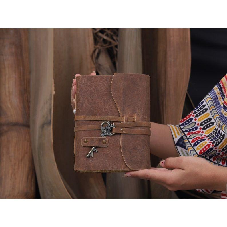 Журнал Антикварный журнал ручной работы в кожаном переплете с неровным краем. Бумага 7, коричневый кожаный журнал, кожаный дневник - блокнот