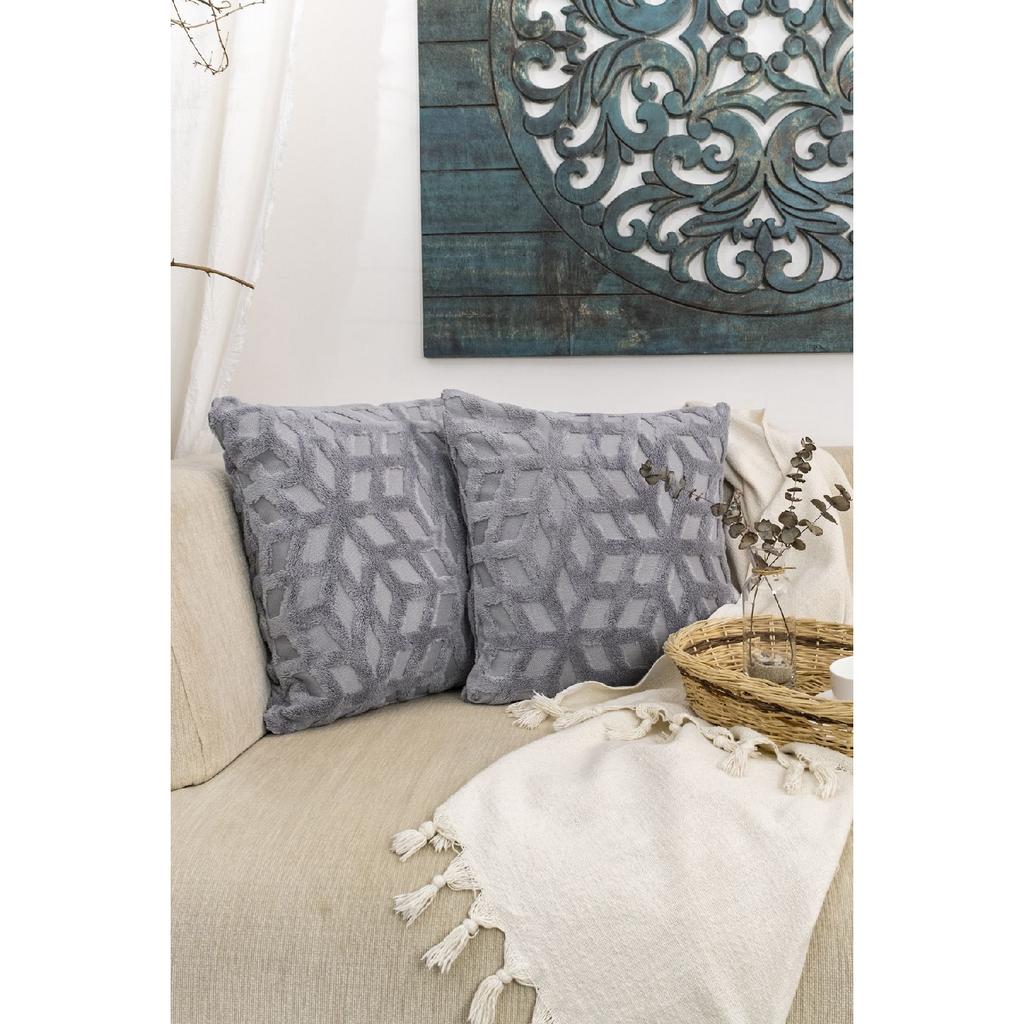 Декоративная наволочка в богемном стиле 2 серо-лилового цвета Наволочка 44x44 см
