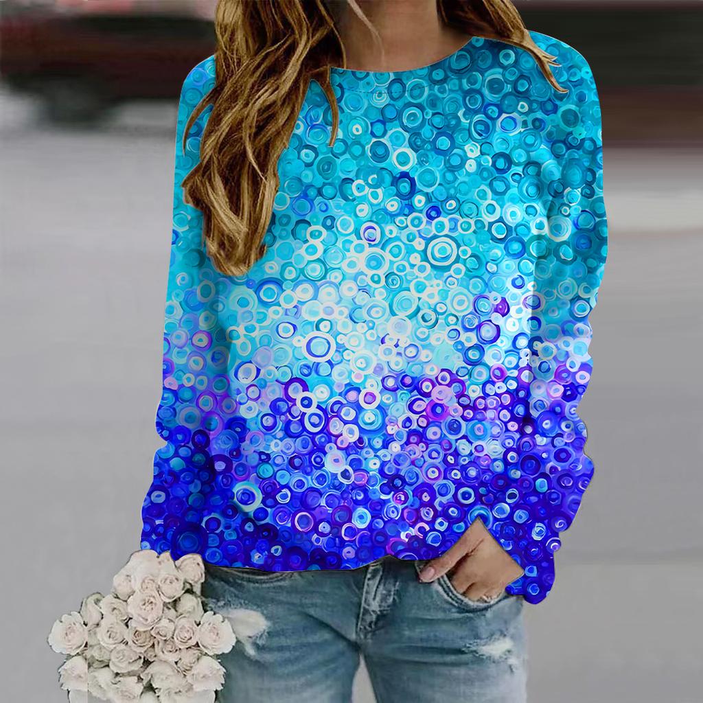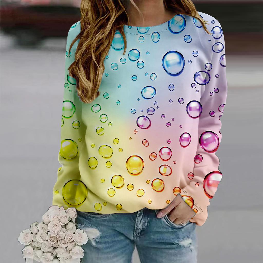 Осенняя женская мода с круглым вырезом и длинным рукавом, свободная одежда, футболка с принтом «капли дождя»