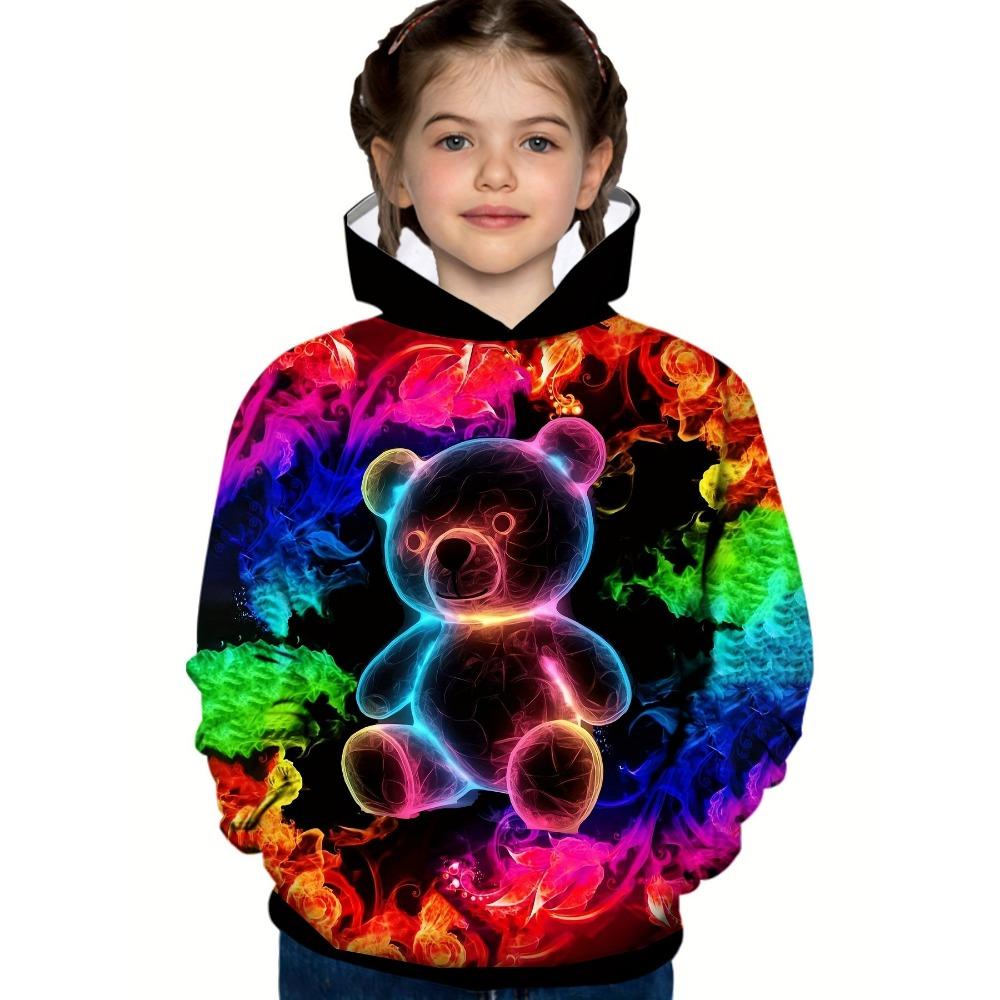 Модная толстовка с длинным рукавом для девочек - яркий красочный графический принт с изображением медведя и пламени, повседневная одежда, идеально подходящая для школы или активного отдыха — купить товар онлайн с бесплатной доставкой по всему миру!