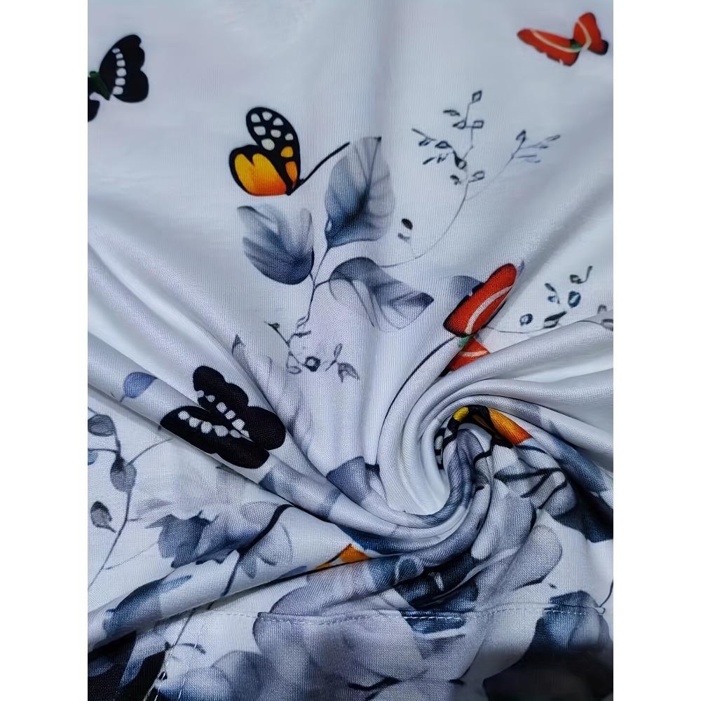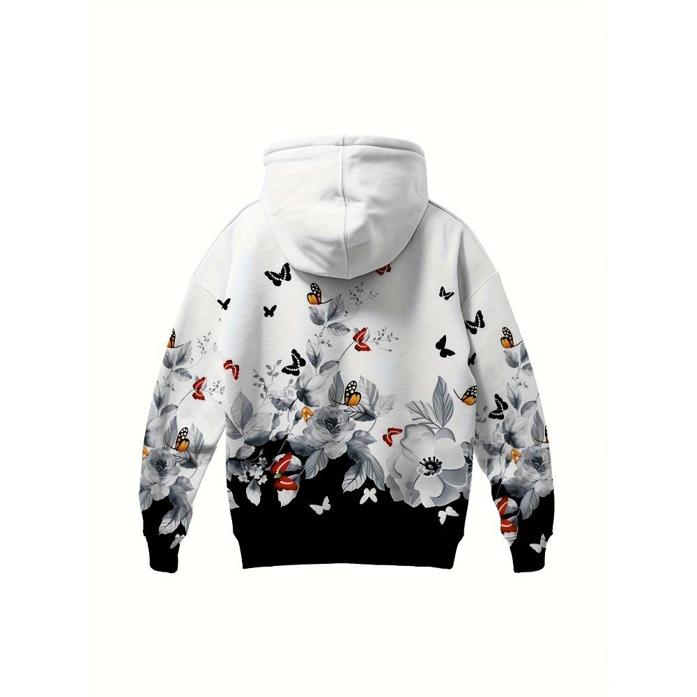Толстовка с капюшоном с рисунком «Растения и бабочки», длинные рукава, завязка на шнурке, карман, повседневная толстовка с капюшоном, женская одежда