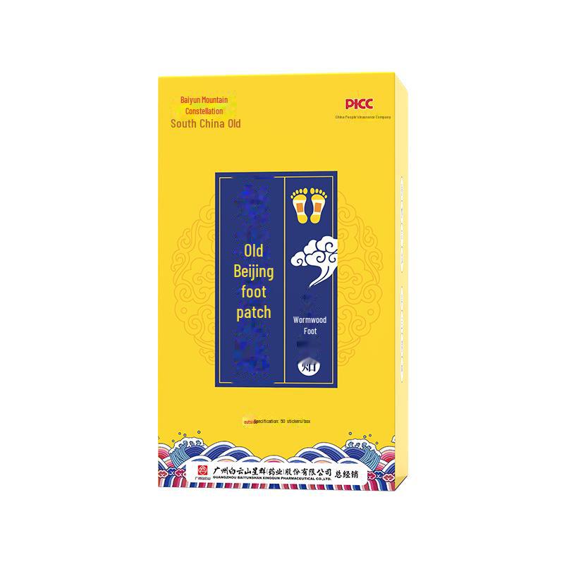 Пластырь для ног «Байюньшань» с полынью и имбирем и бамбуковым уксусом для ухода за ногами