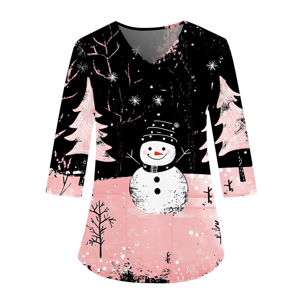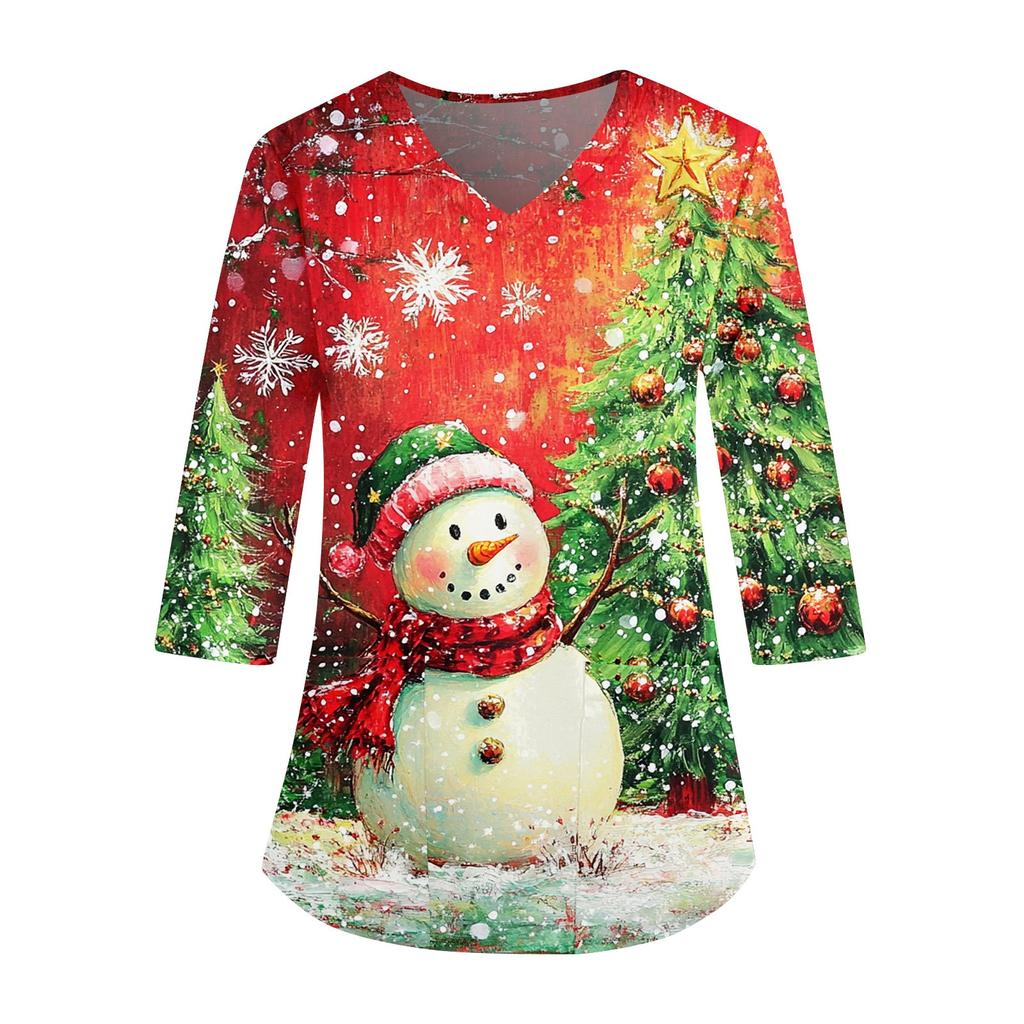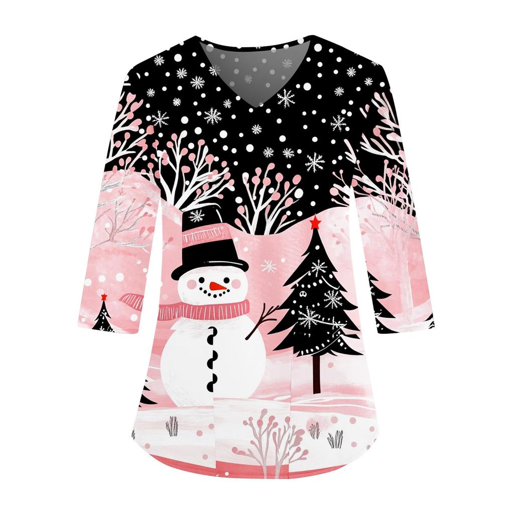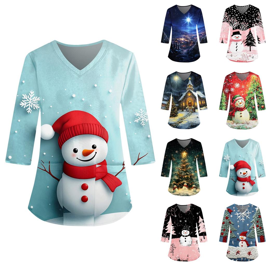 Женская модная и повседневная рождественская футболка с рукавом три четверти