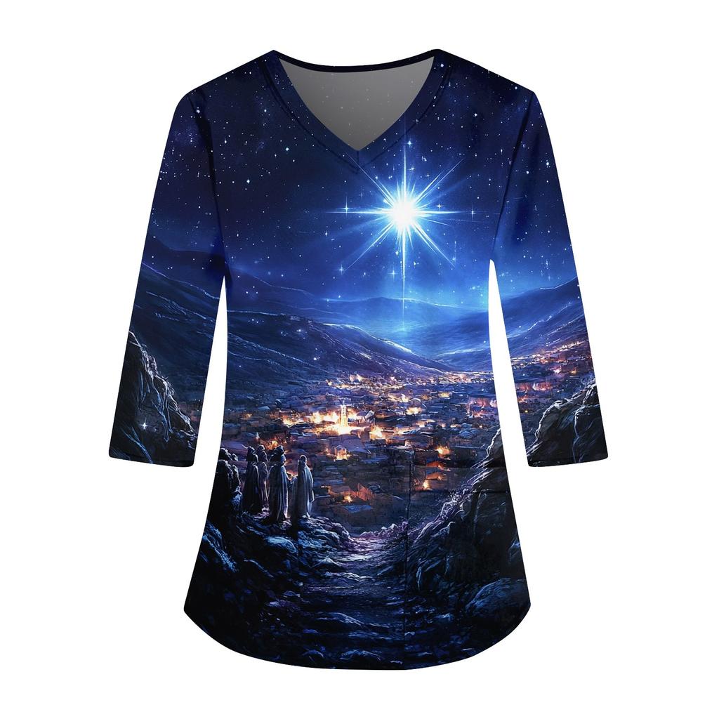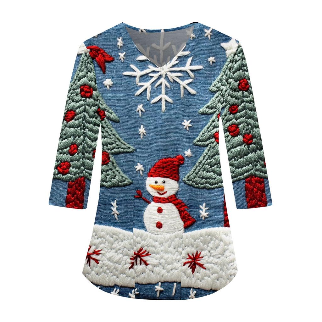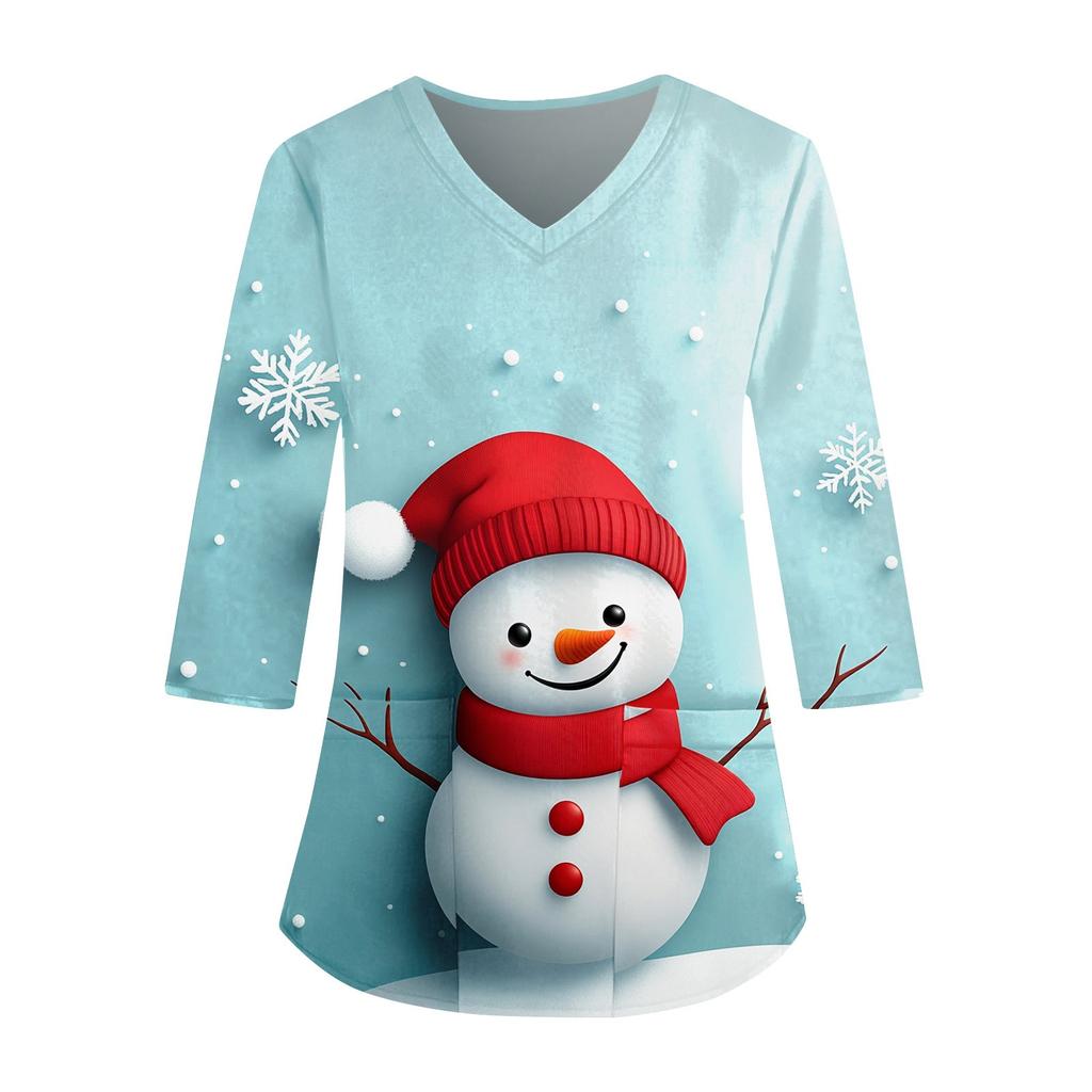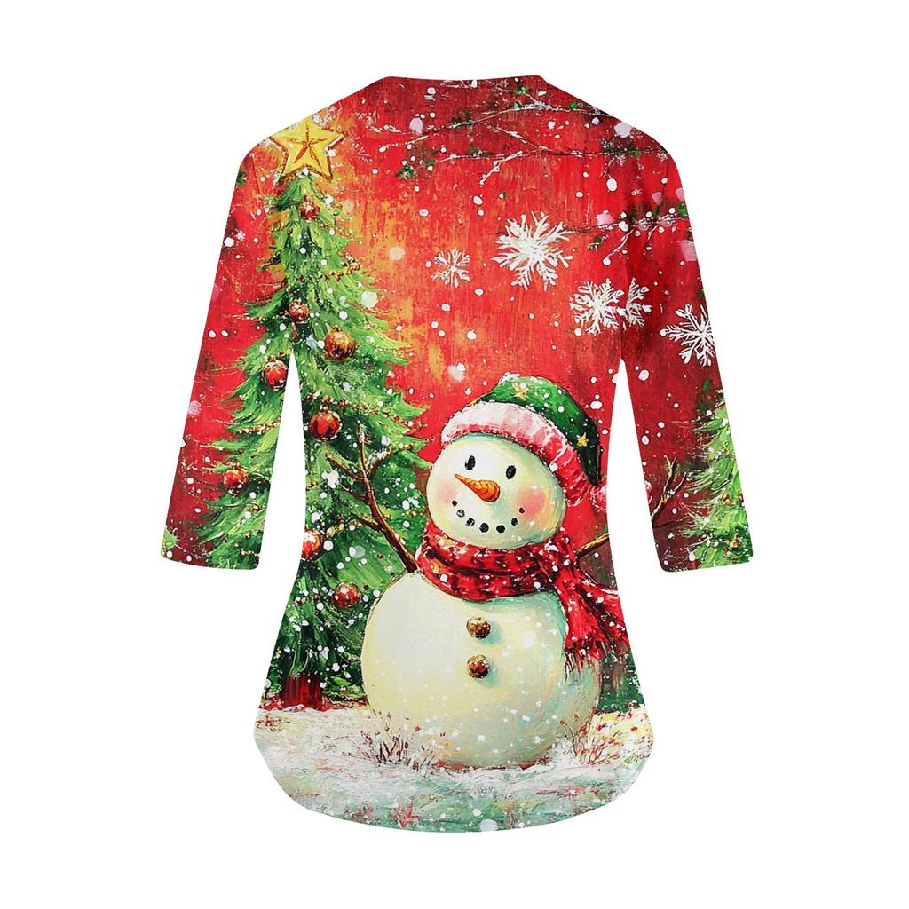 Женская модная и повседневная рождественская футболка с рукавом три четверти