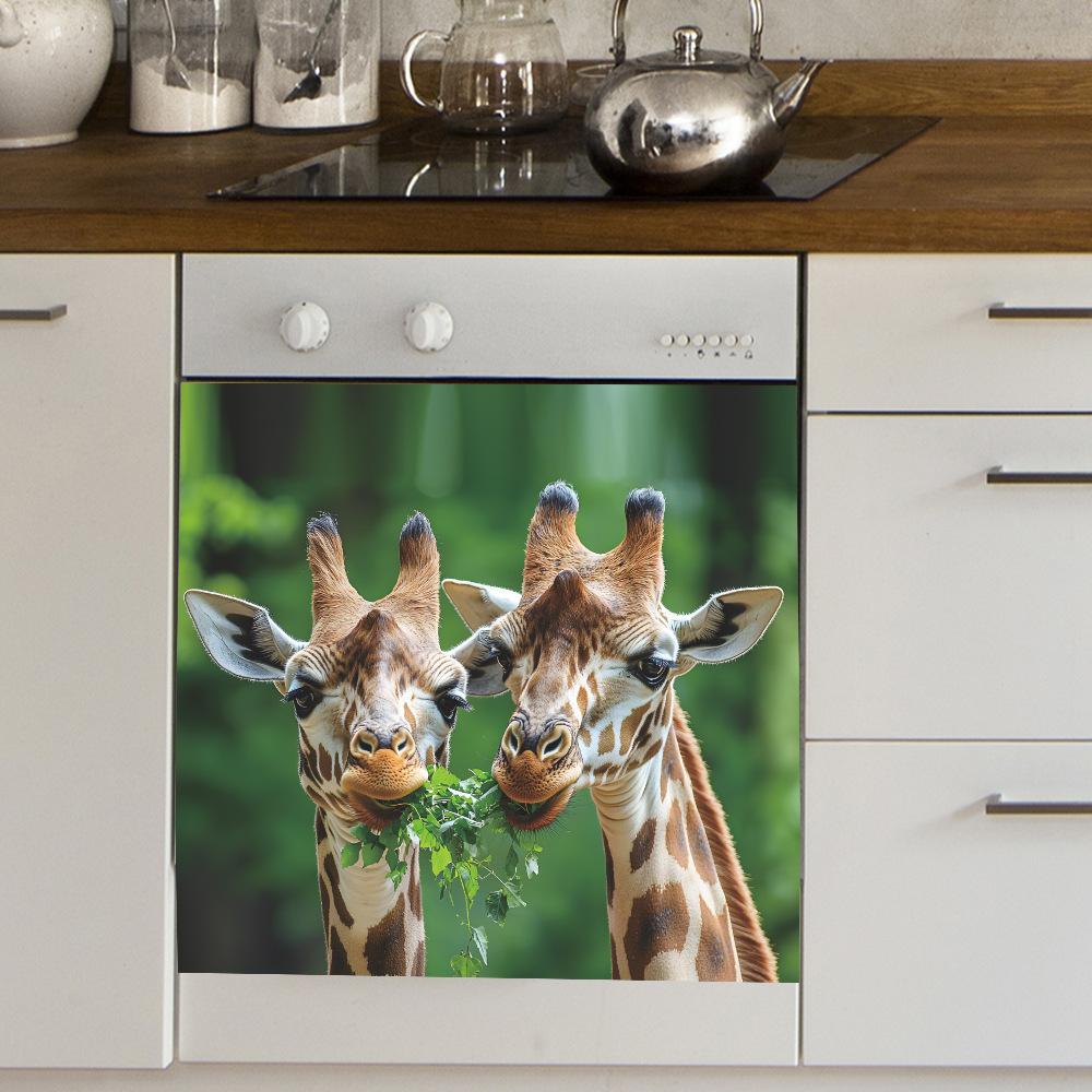 Смешной жираф, едящий траву, кухонные шкафы, посудомоечная машина, домашний декор, наклейки, самоклеящиеся