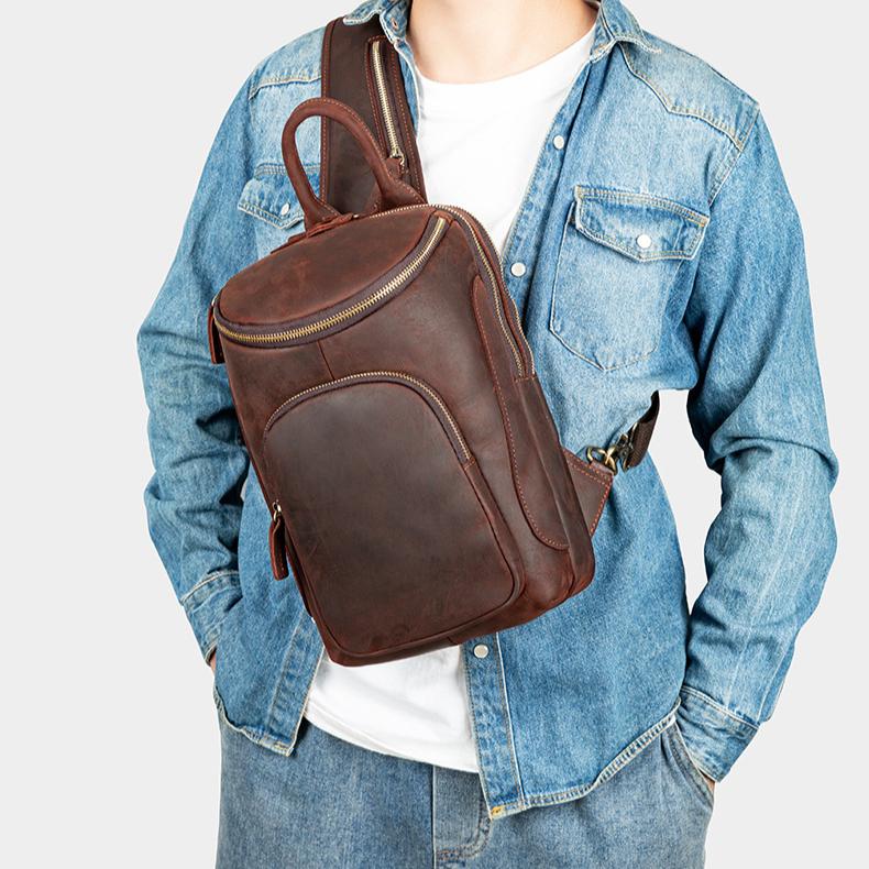 Мужская нагрудная сумка Crazy Horse Leather, винтажная, большая вместимость, через плечо, на голову, из натуральной коровьей кожи, мужская нагрудная сумка — купить товар онлайн с бесплатной доставкой по всему миру!