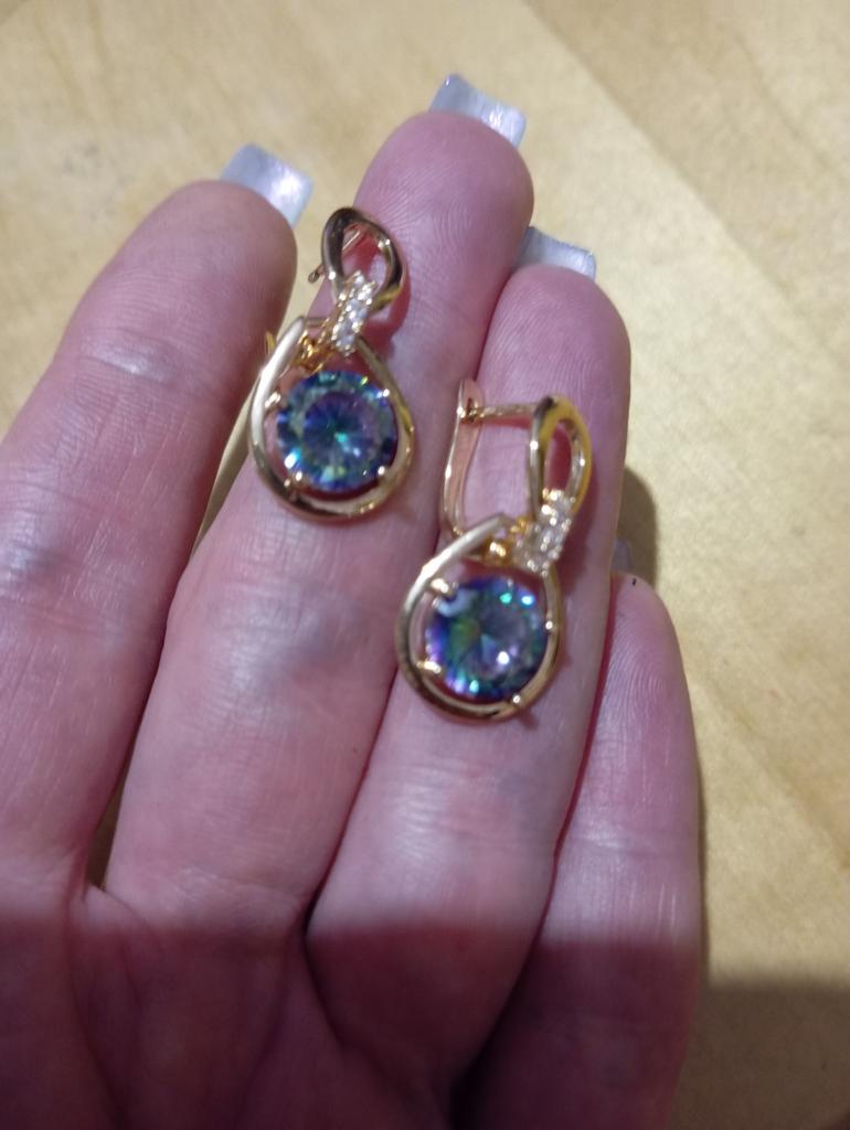 Очень миленькие серёжки. Не массивные, но достаточно заметные😊 на солнце камешки переливаются и как золотые. Рекомендую и спасибо всем😊