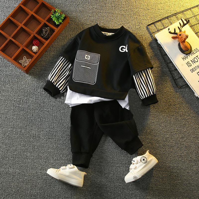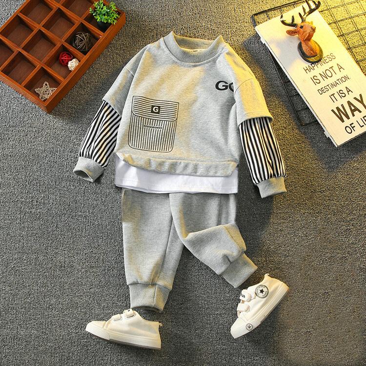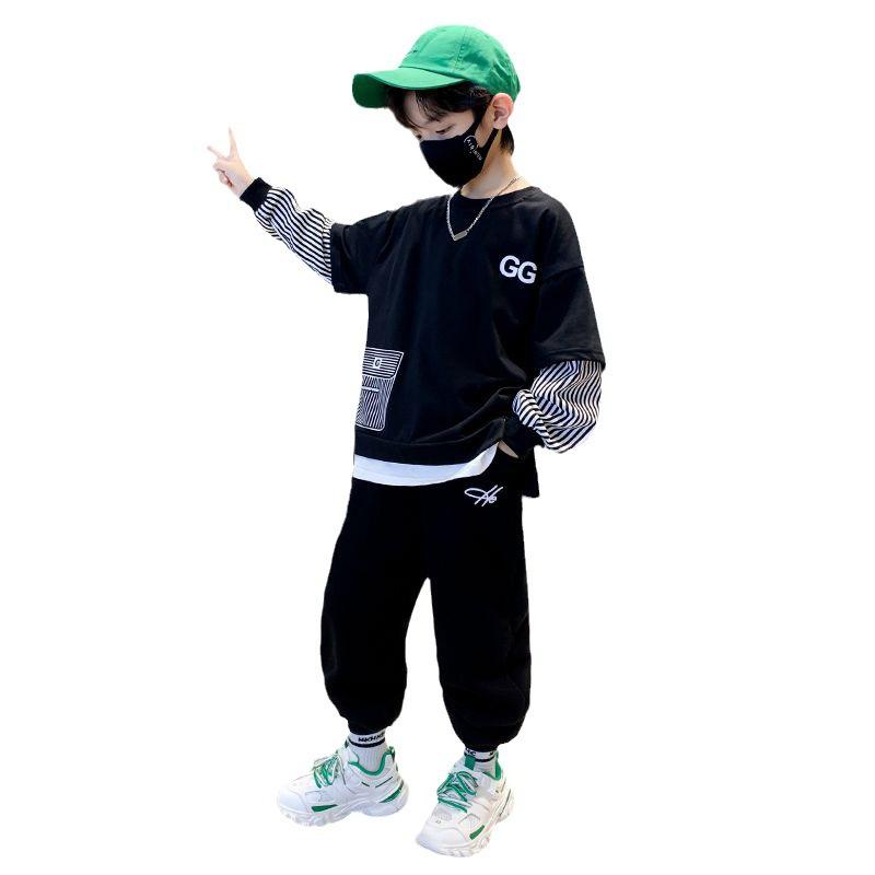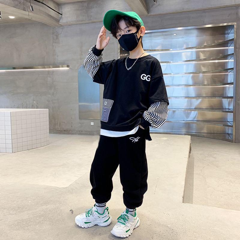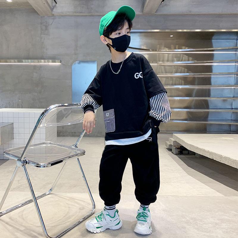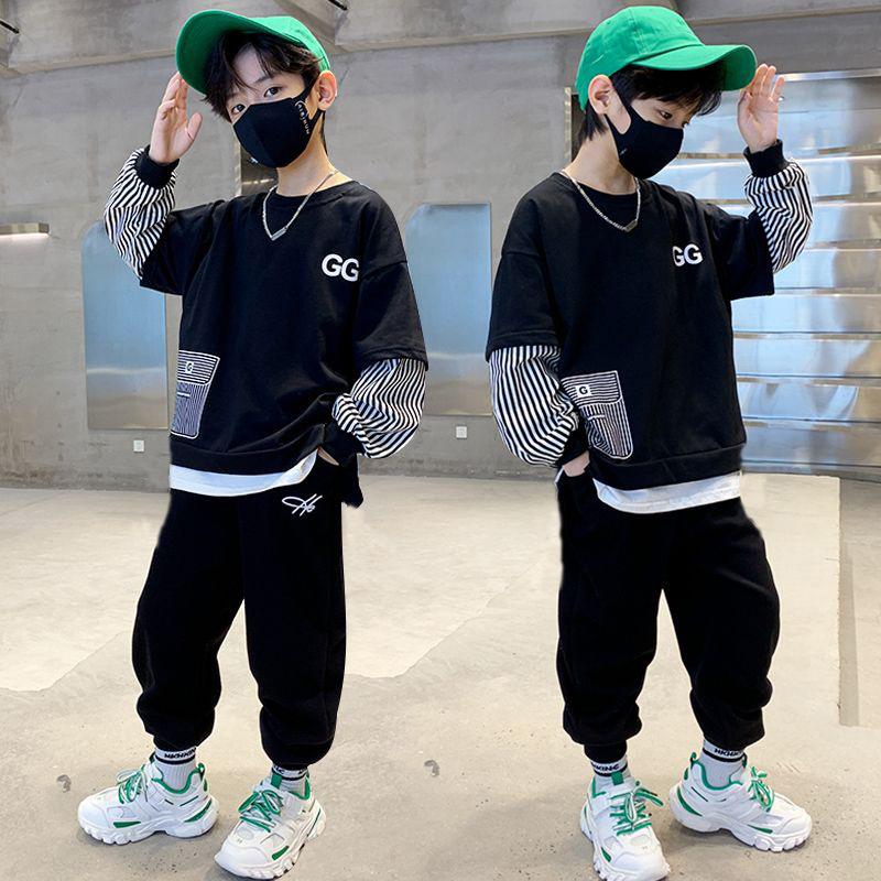 Модная детская одежда, весенний костюм-свитер для мальчиков, новый поддельный комплект из двух частей, красивый жареный уличный спортивный комплект из двух частей для детей среднего и большого возраста