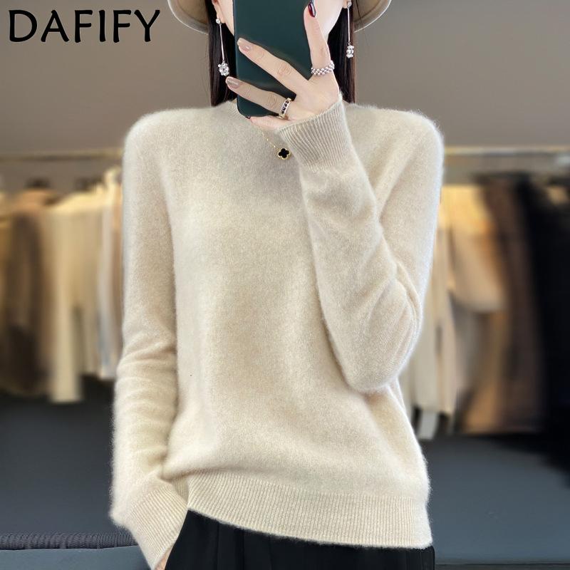 DAFIFY Женская мода повседневная осень-зима однотонный принт длинный рукав O-образный вырез свитера