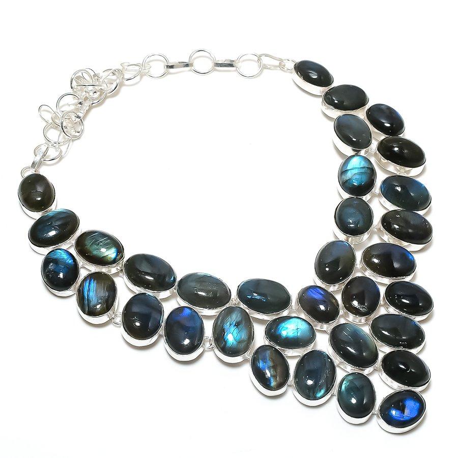 Ожерелье ручной работы из стерлингового серебра 925 пробы с драгоценным камнем лабрадоритом 18 дюймов q5W54