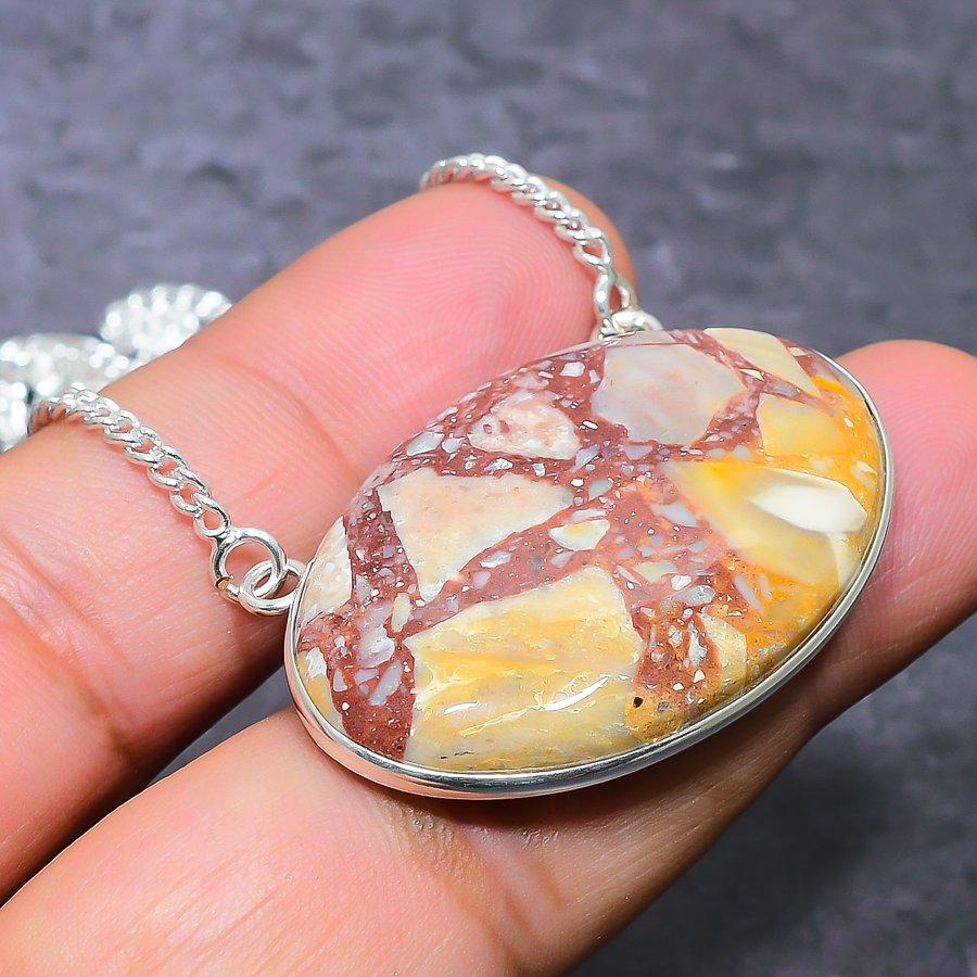 Драгоценный камень Яшма Серебряный Лист Ручной работы Ожерелье из серебра 925 пробы 18" j7j70