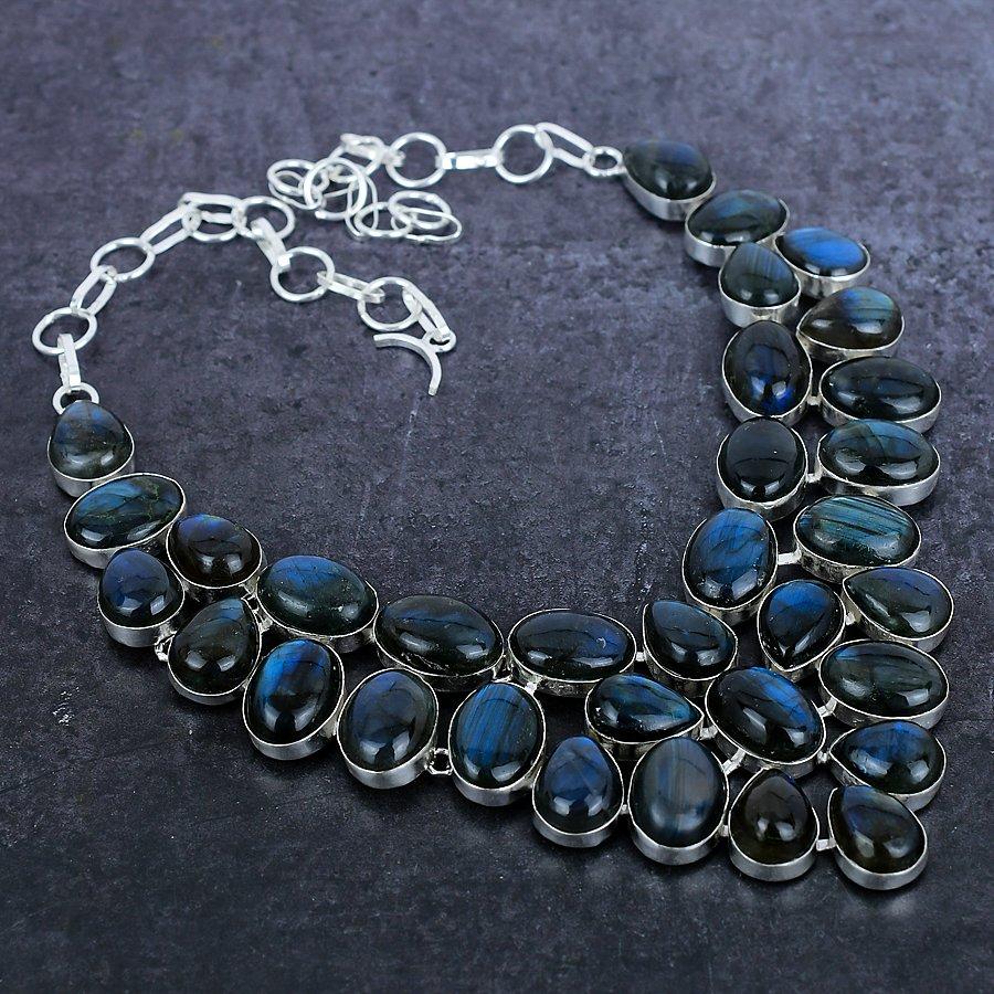 Натуральный лабрадорит драгоценный камень 925 стерлингового серебра ювелирное ожерелье 18" y1a95