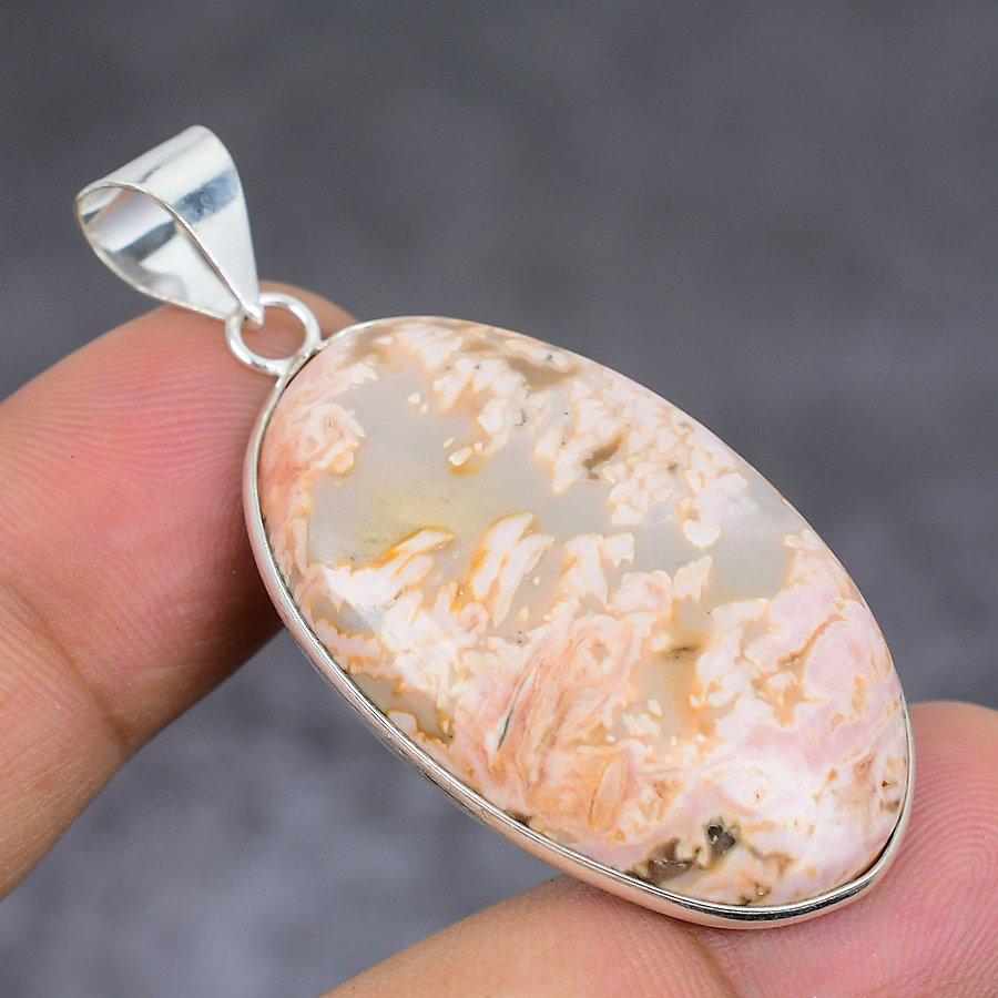 Rhodochrosite Gemstone Handmade 925 Sterling Silver Jewelry Pendant 1.93" j2q52