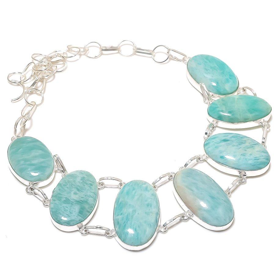 Ожерелье из серебра 925 пробы с натуральным амазонитом 18 дюймов T9W06