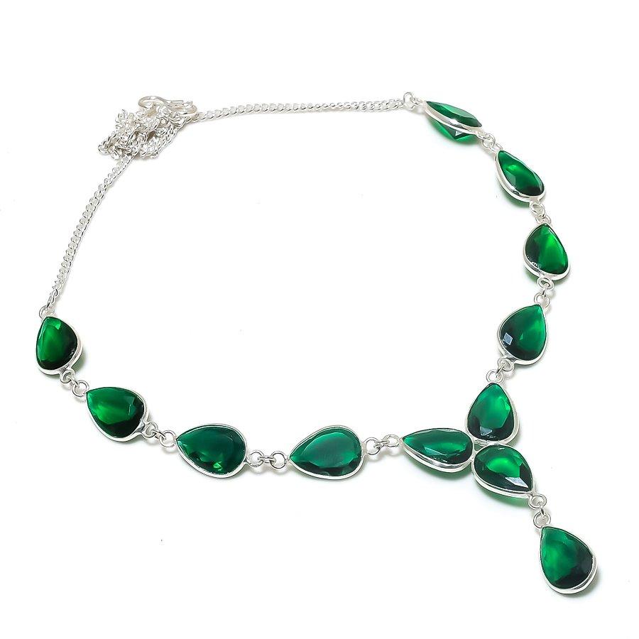 Натуральный хромдиопсид драгоценный камень 925 стерлингового серебра ювелирные изделия ожерелье 18" g8V26