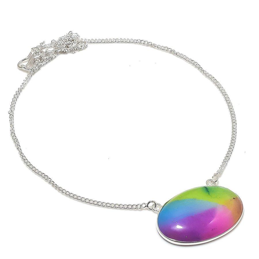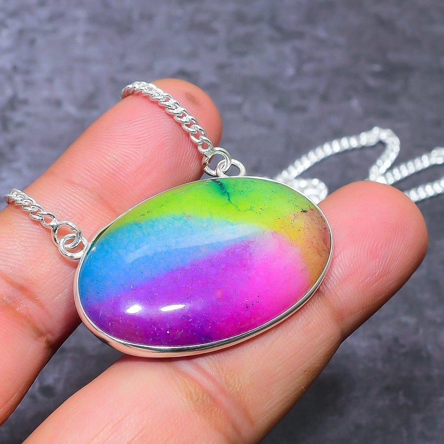 Ювелирное ожерелье из натурального радужного солнечного кварца 925 пробы 18 дюймов A2u81