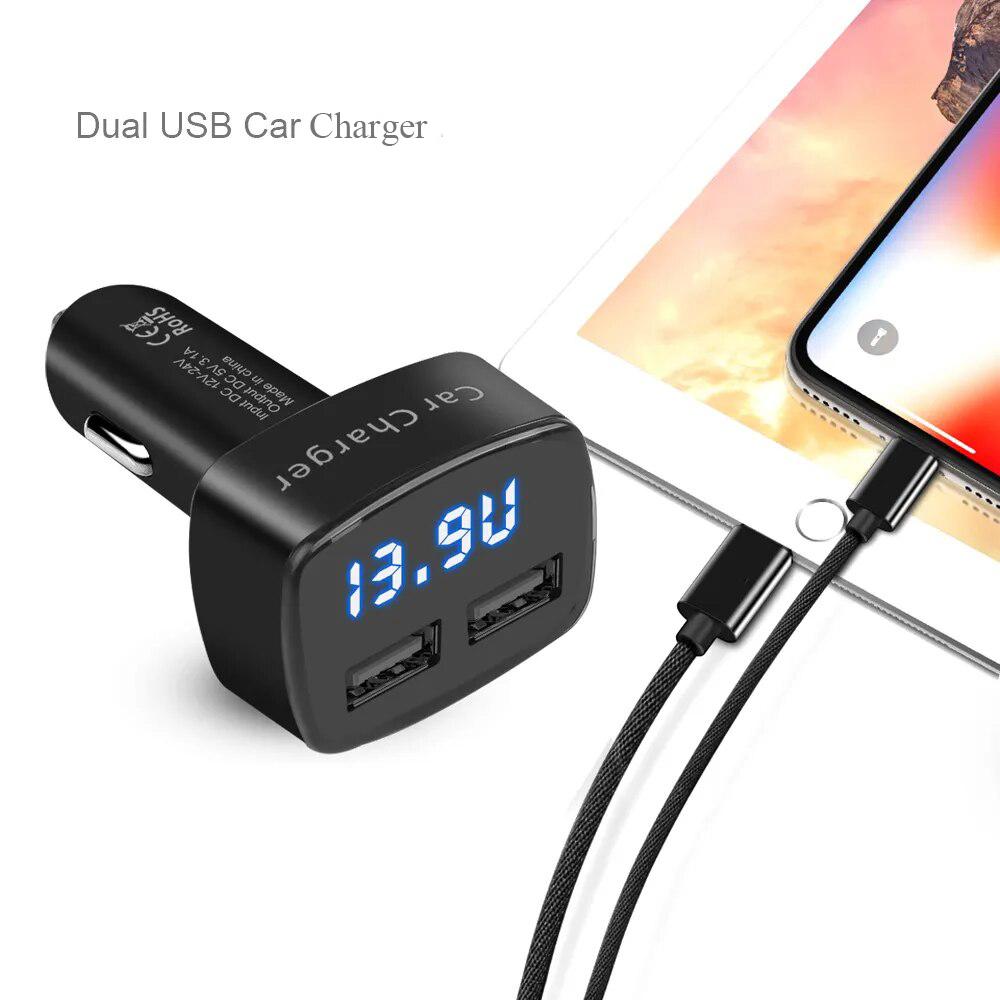 4 в 1 автомобильное зарядное устройство с двумя USB-портами 3,1 А, адаптер для быстрой зарядки, цифровой дисплей, напряжение, температура