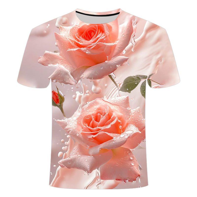 Летняя креативная серия 2024 года с 3D-принтом и различными водными цветами, мужская и женская футболка с круглым вырезом Niche Fashion