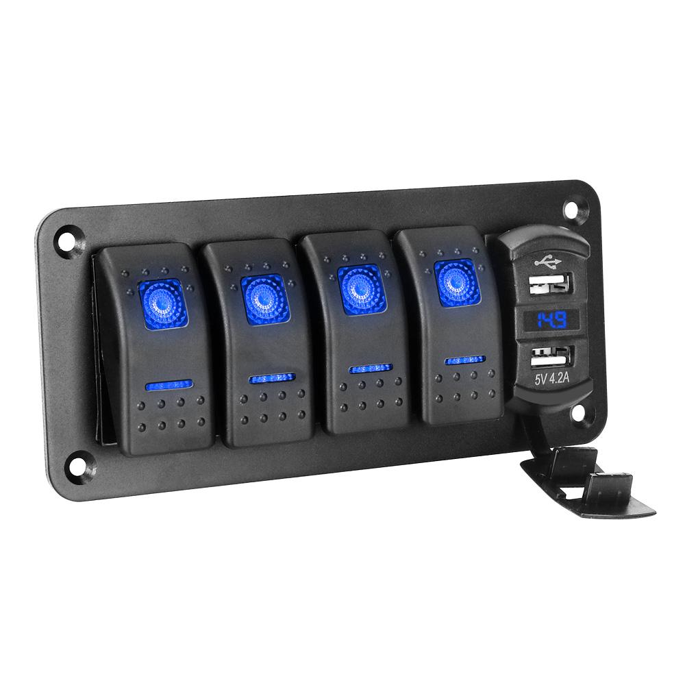 5 Панели переключателей Gang Rocker: Эти переключатели имеют новой конструкции для повышения долговечности. Эти переключатели рассчитаны на 10000 циклов включения и выключения без сбоев. Брызгозащищенная поверхность панели, водонепроницаемые колпачки и антипроникающие резиновые кольца. Красный светодиодный индикатор, водонепроницаемая доска.
