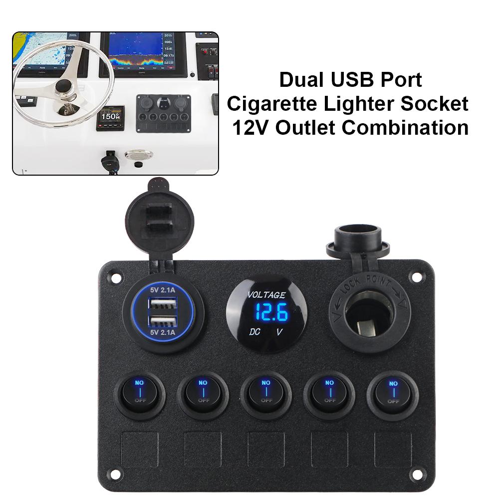 5-клавишная автомобильная панель переключателей автомобильные аксессуары морской светодиодный рокер 12 В розетка комбинированная панель переключателей для лодки двойной порт USB водонепроницаемый цифровой вольтметр — купить товар онлайн с бесплатной доставкой по всему миру!