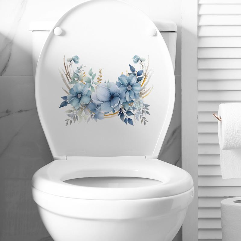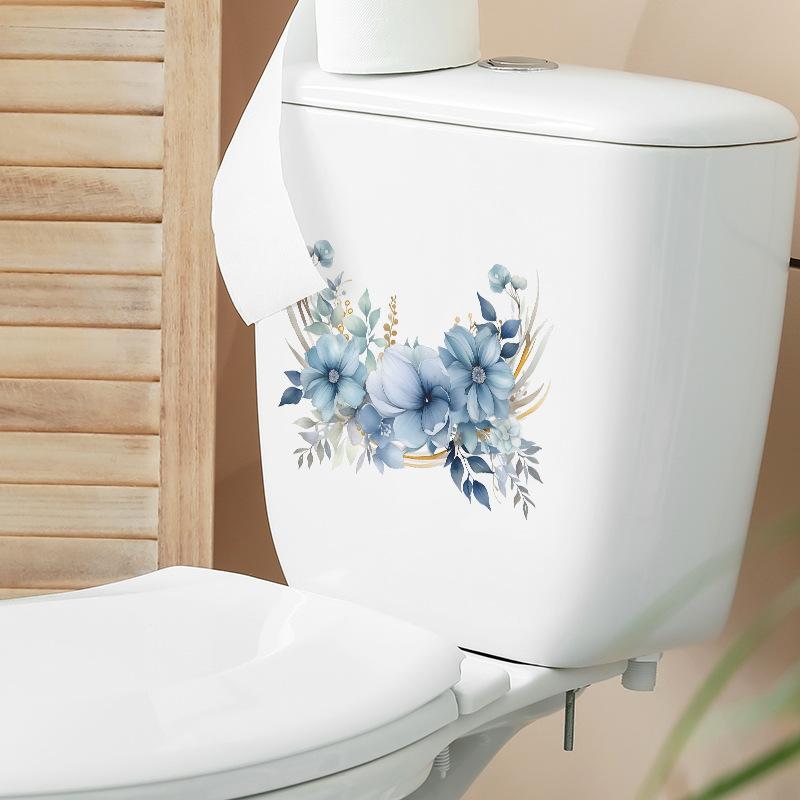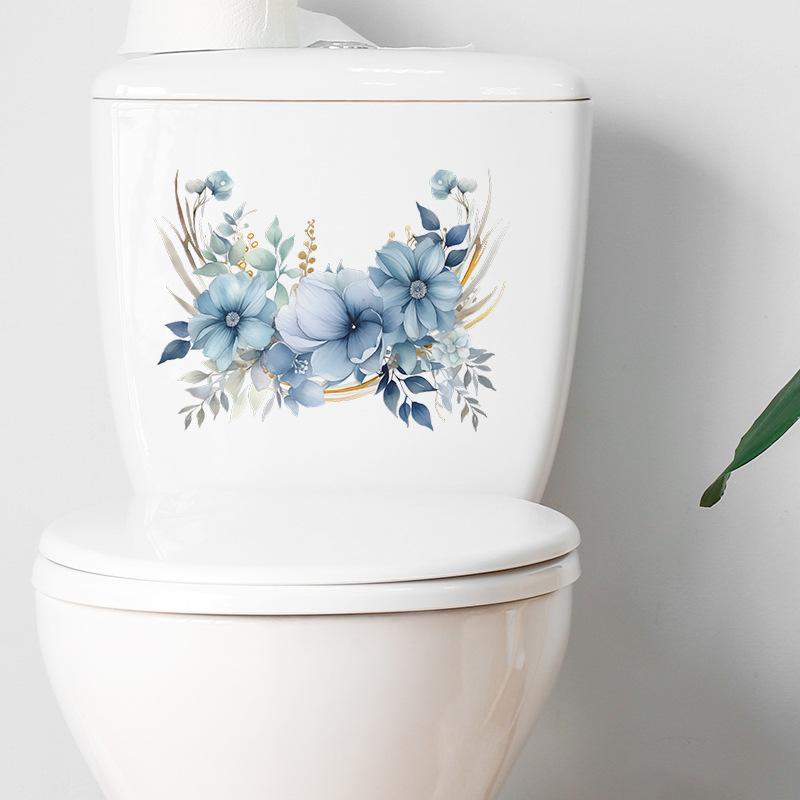 Акварельный синий цветок туалет с ванной комнатой украшение для дома настенная наклейка