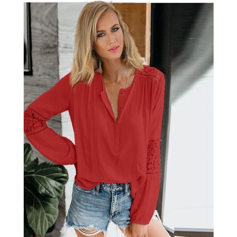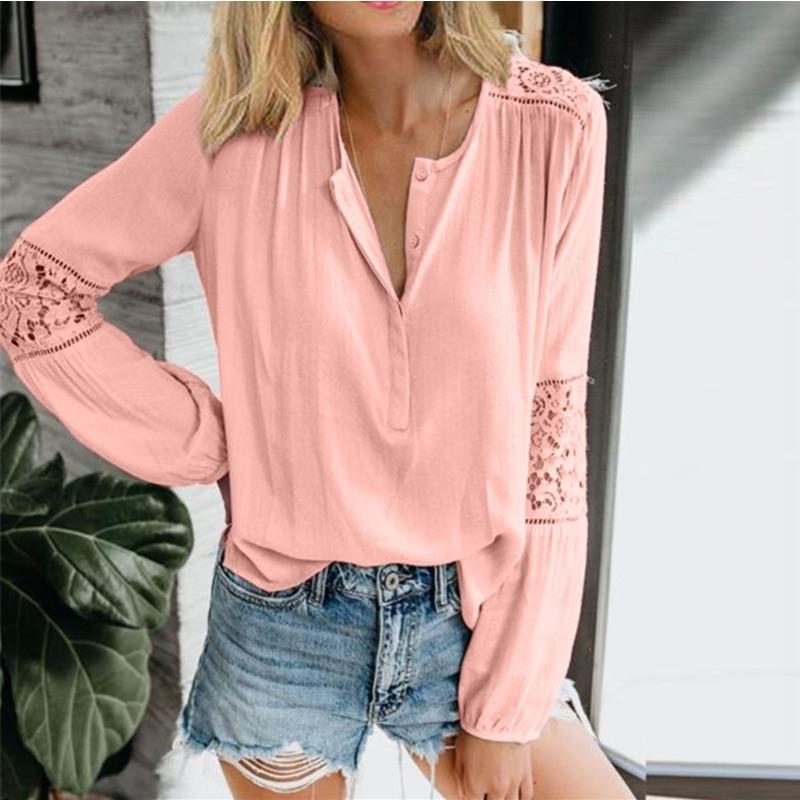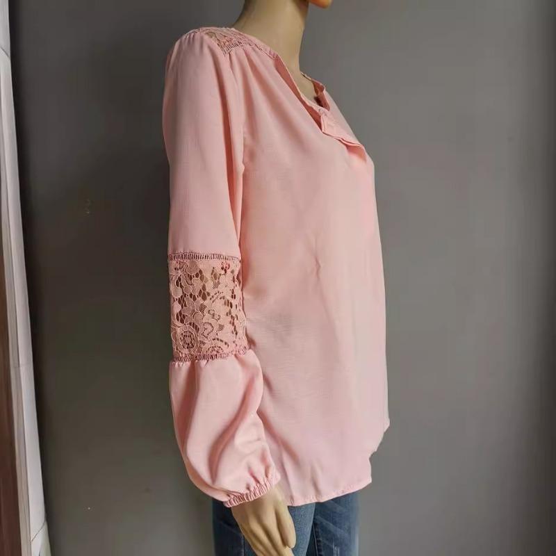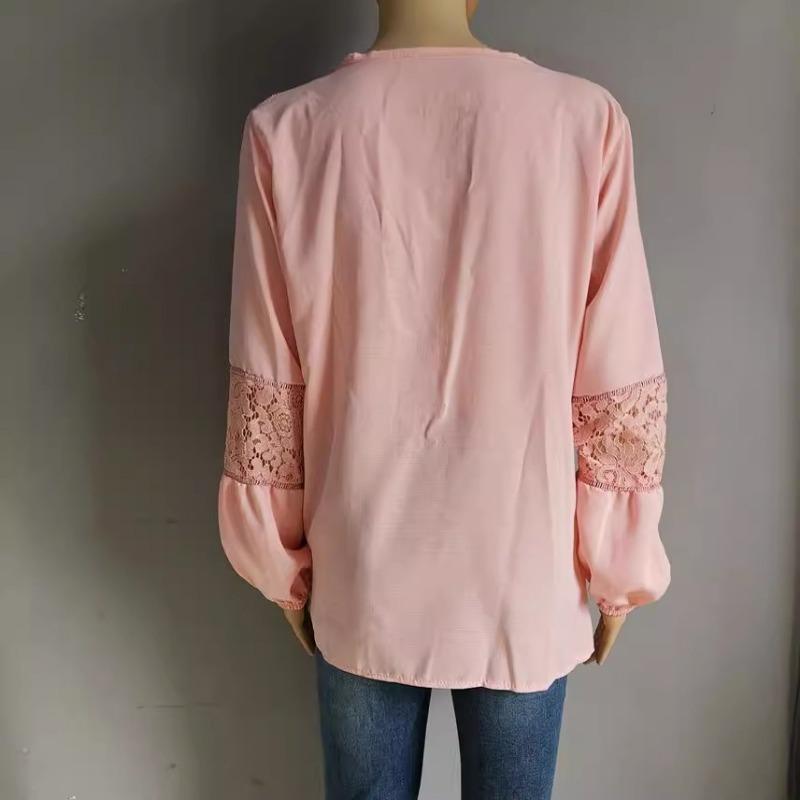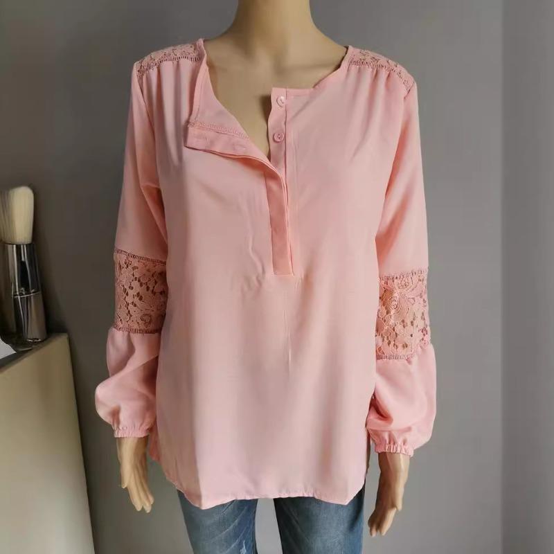Блузка Топ Весенняя кружевная сращивающаяся ажурная свободная рубашка с длинным рукавом