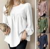Длинные рукава с оборками по подолу, свободные манжеты, женские хлопковые льняные однотонные блузки и рубашки с круглым вырезом