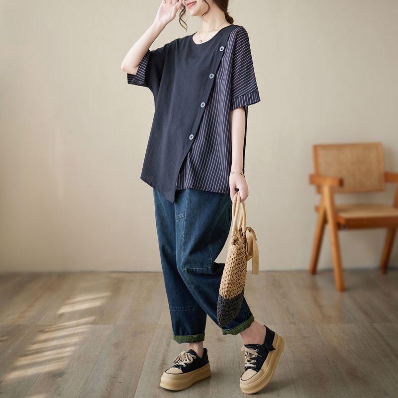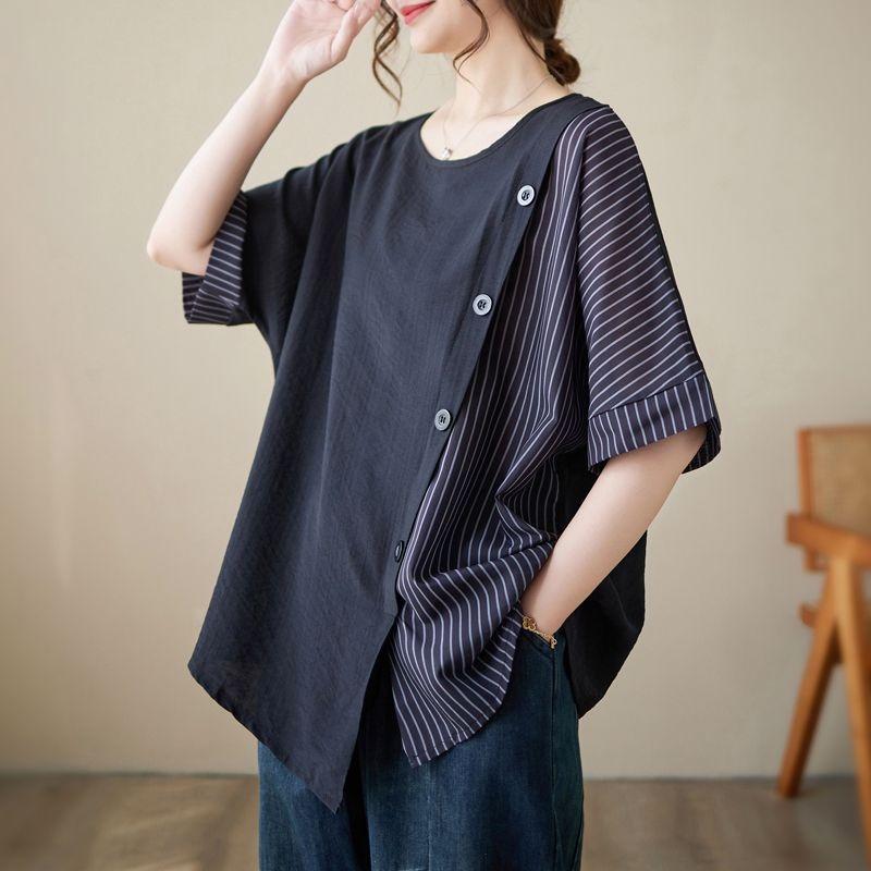 Летние женские блузки больших размеров с круглым вырезом и пуговицами, рубашка, наряд для мам, футболка с короткими рукавами, топ