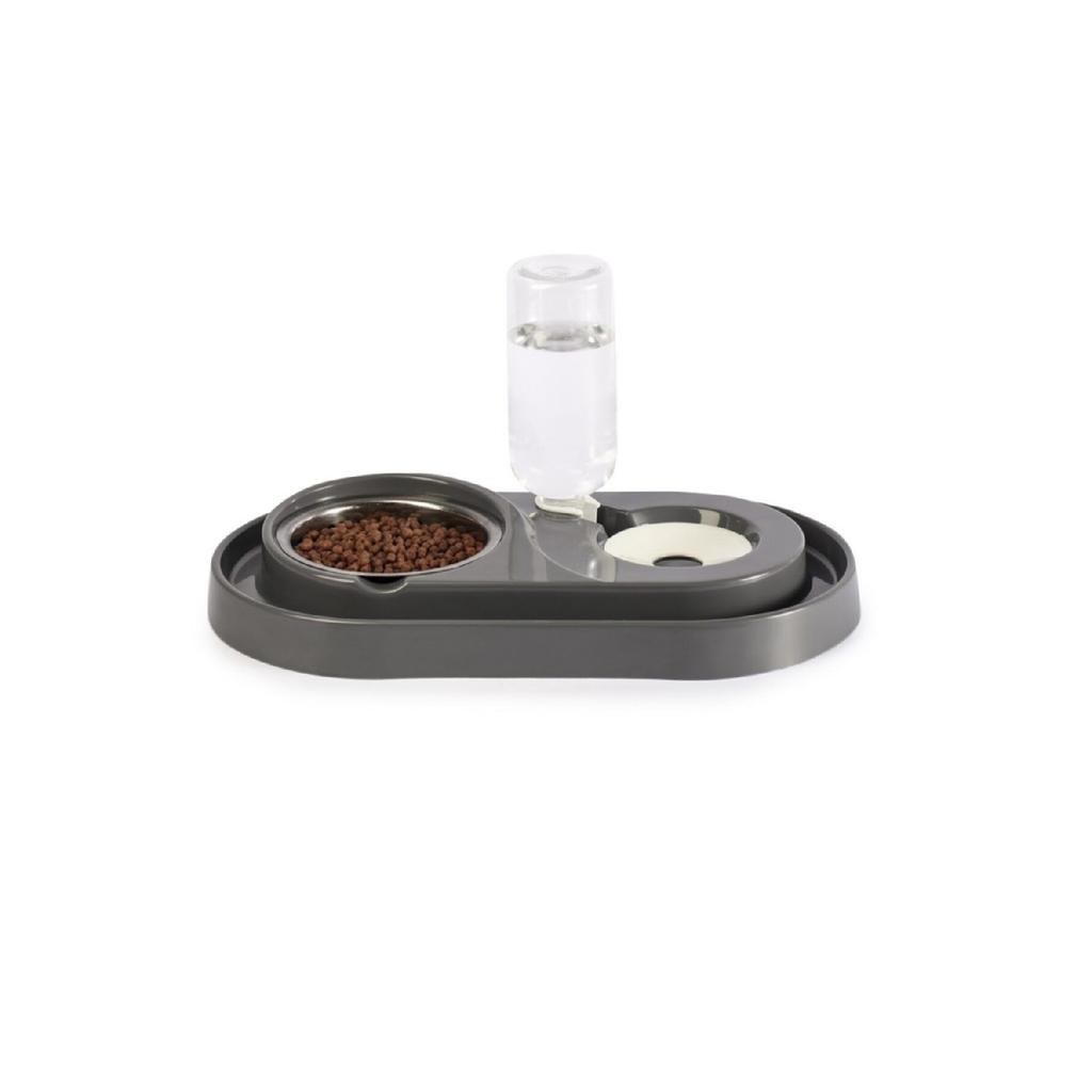 Набор мисок для корма и воды для кошек со стальной миской 500 мл, серый