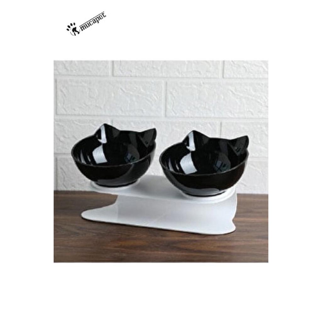 Двойная миска для еды с кошачьей головой (черный)