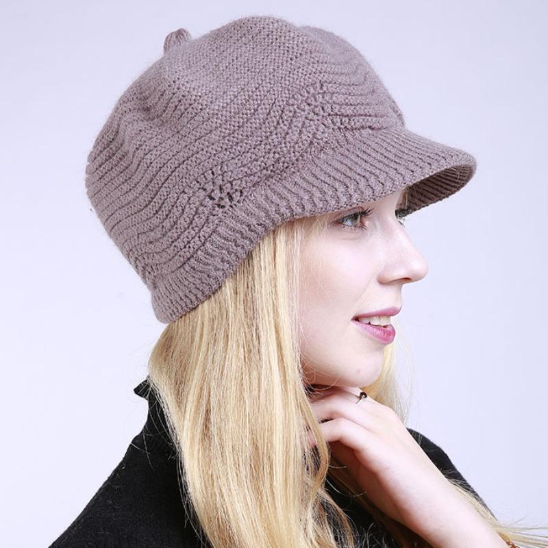 Плюс бархатная теплая кроличья нить женская однотонная берет твист шапка осень-зима женская вязаная кепка с козырьком