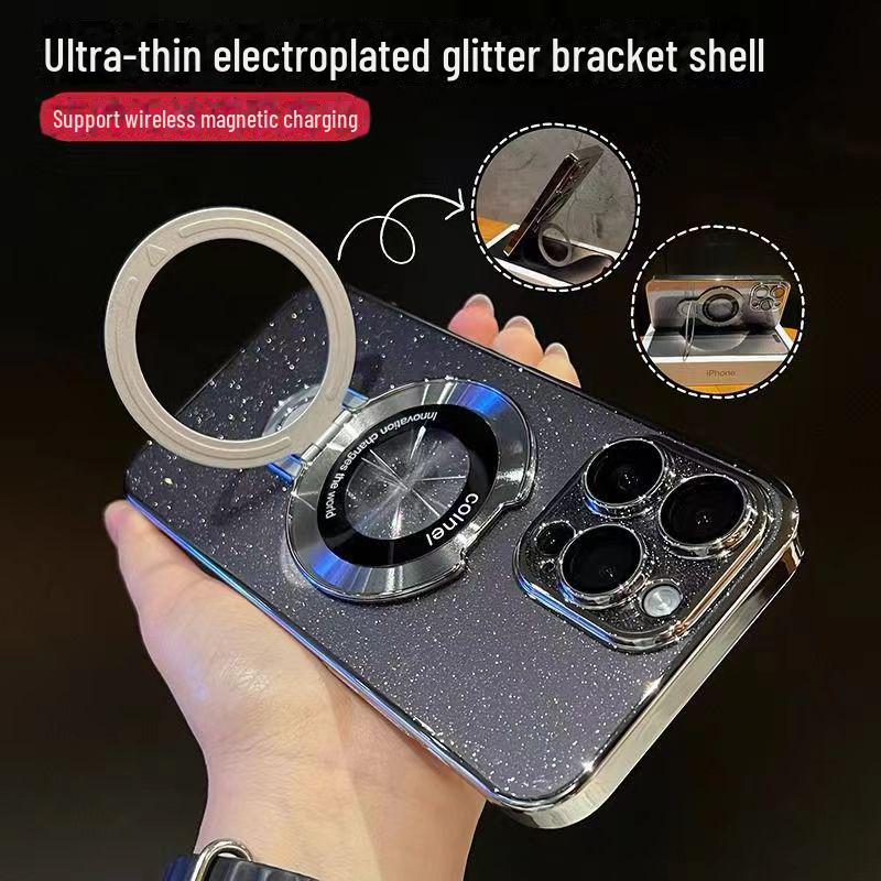 Ультратонкий чехол для телефона Apple 14ProMax с антижелтым блеском и магнитной пудрой, подставка для iPhone13/15 — для женщин.