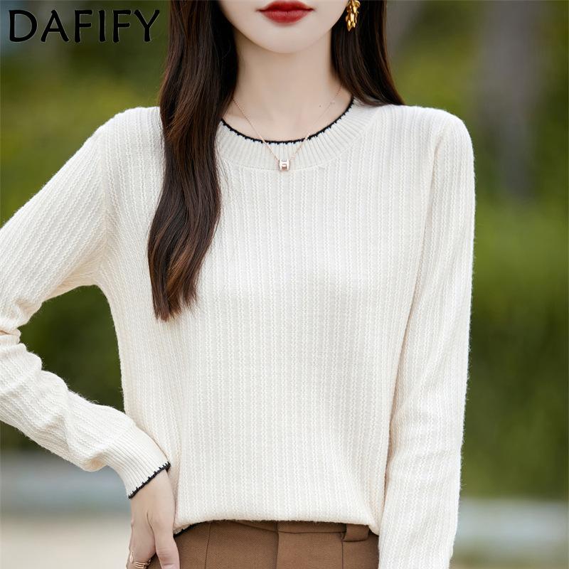 DAFIFY Женская мода повседневная осень-зима однотонный принт длинный рукав O-образный вырез свитера