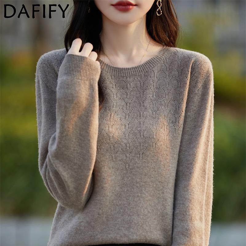 DAFIFY Женская мода повседневная осень-зима однотонный принт длинный рукав O-образный вырез свитера