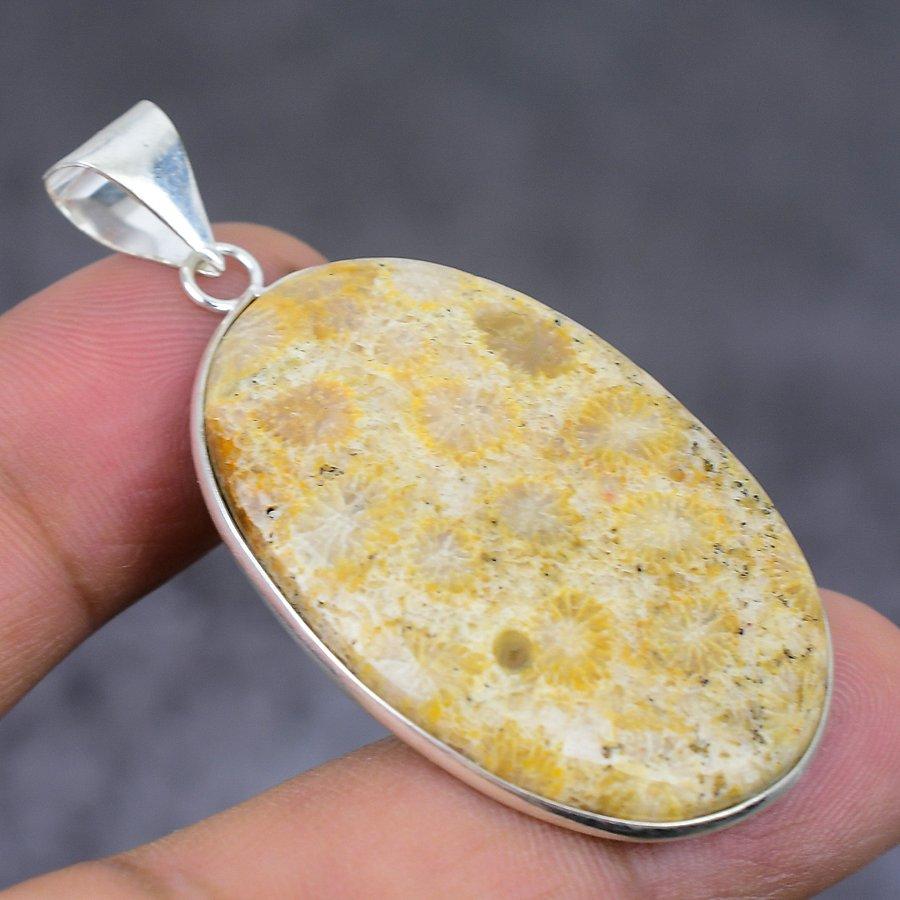 Подвеска из серебра 925 пробы с натуральным ископаемым кораллом 1,97 дюйма