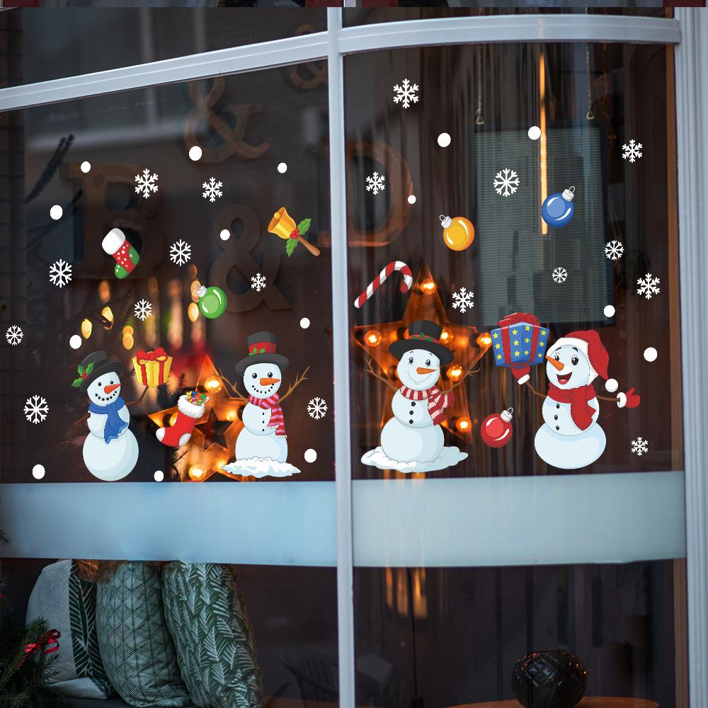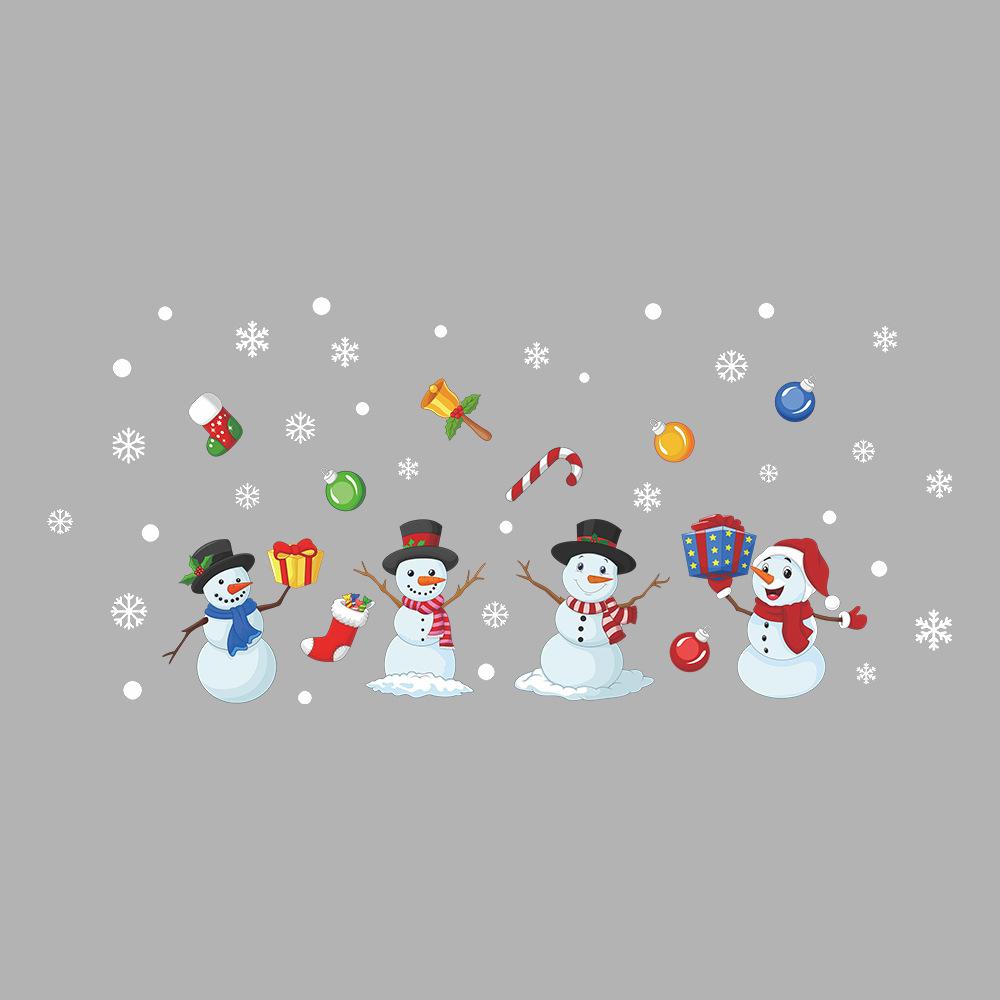 Рождественский снеговик, подарочная коробка, снежная атмосфера, украшение, стеклянные окна, наклейки на окна