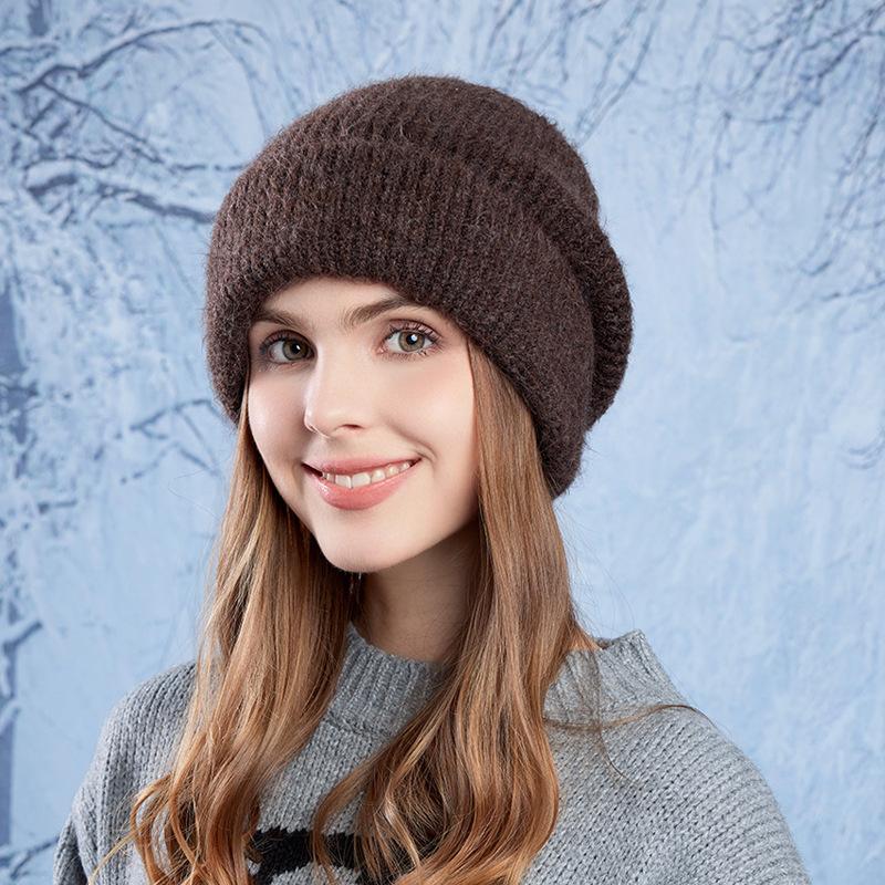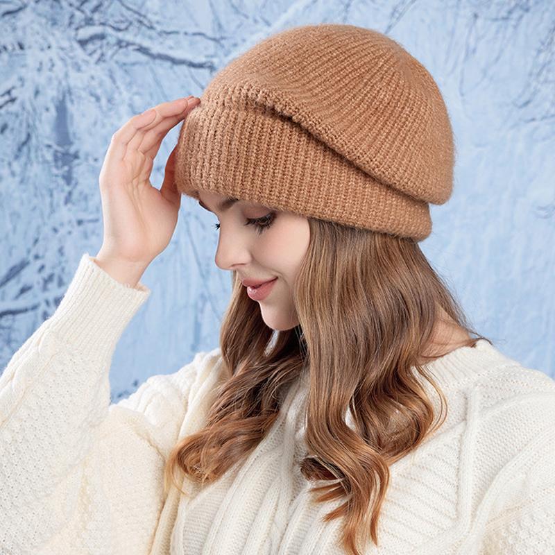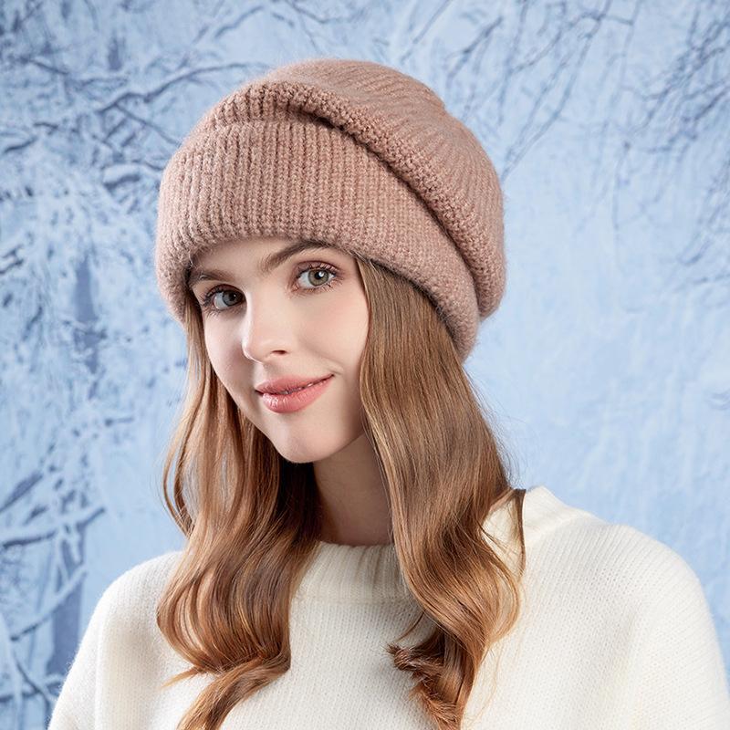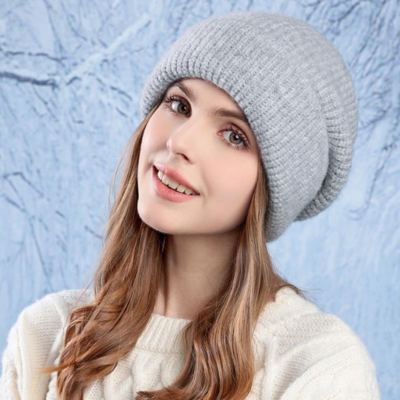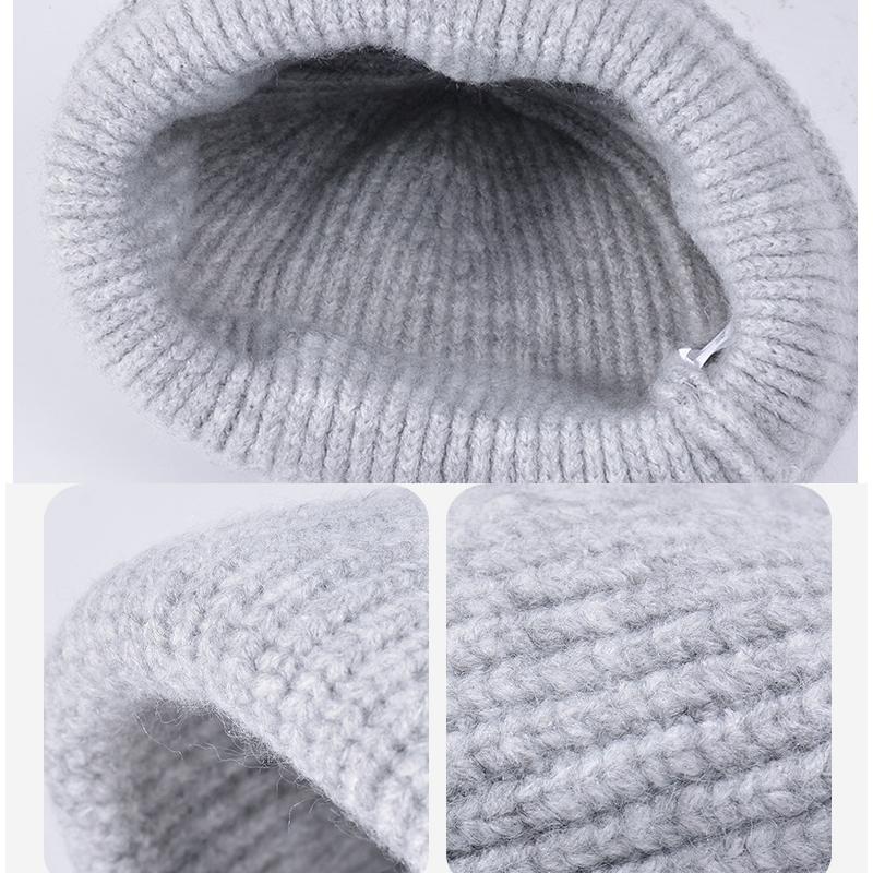 Зимняя теплая шерстяная шапка с наушниками для головы, женская вязаная шапка с большой окружностью головы