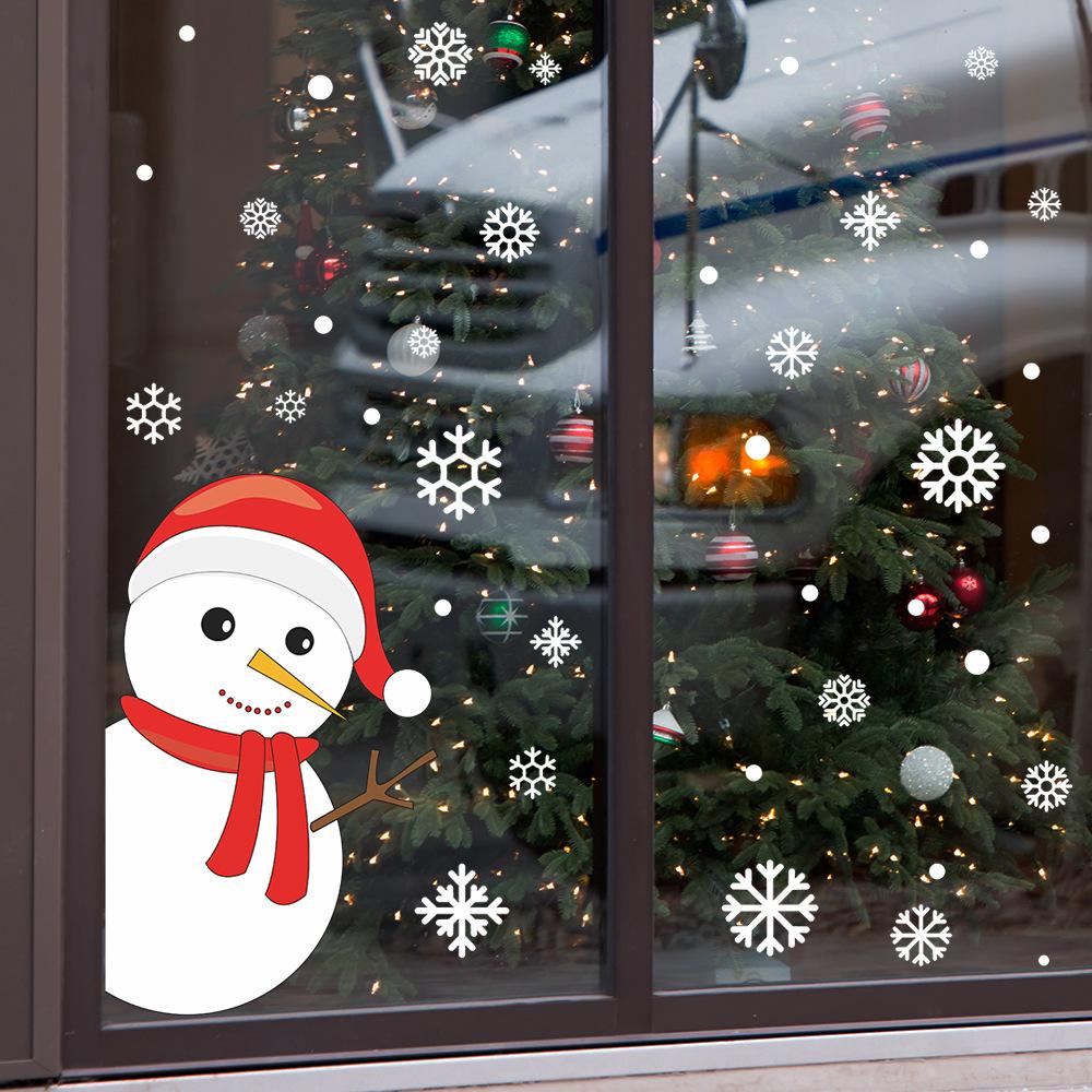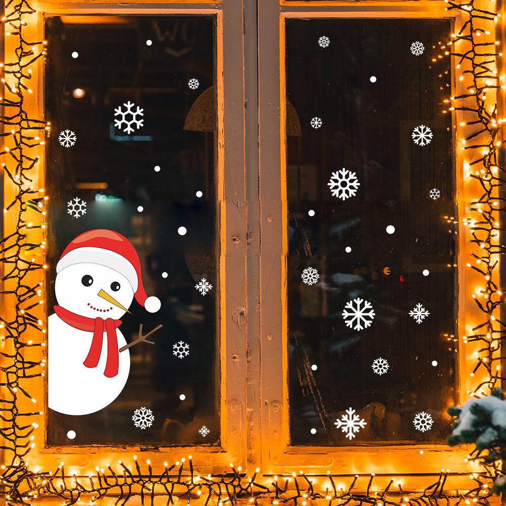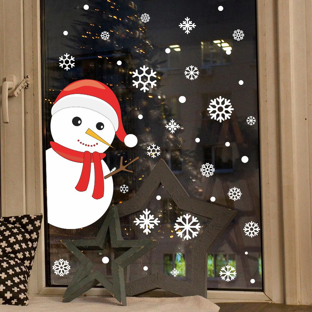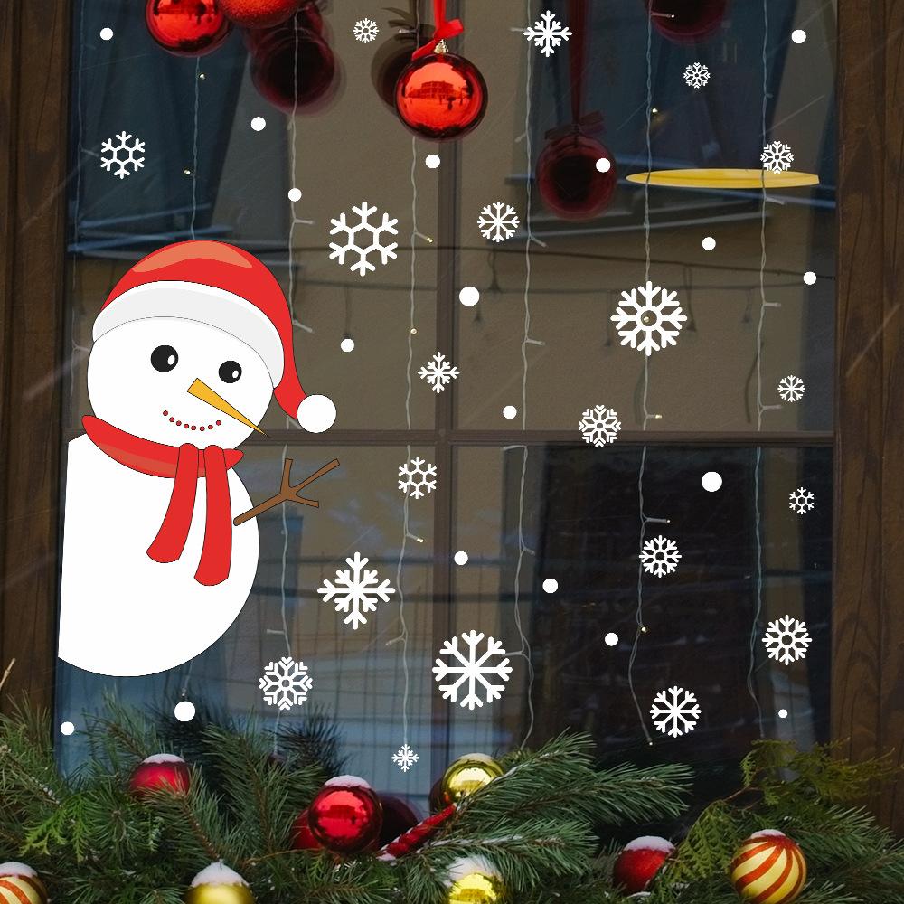 Рождественский снеговик, снежинка, домашняя атмосфера, декоративные стеклянные окна, наклейки на окна