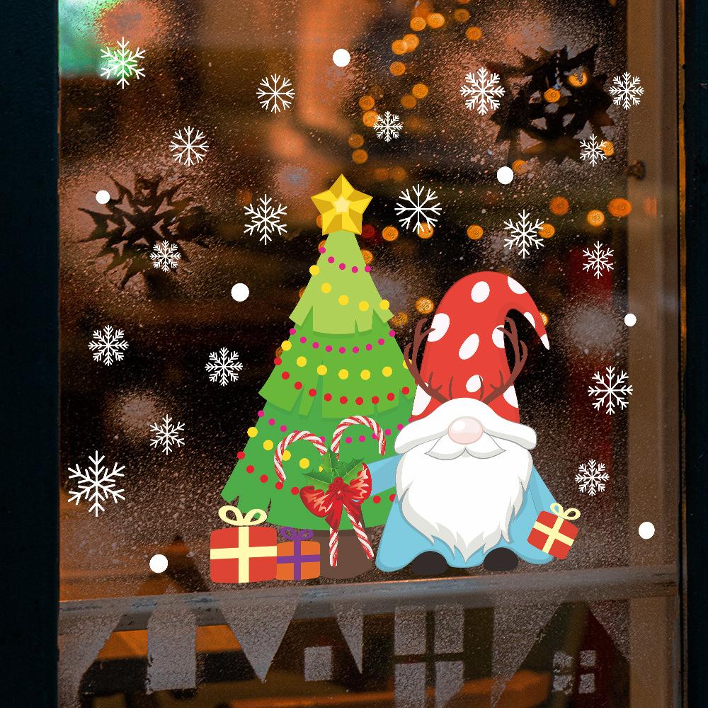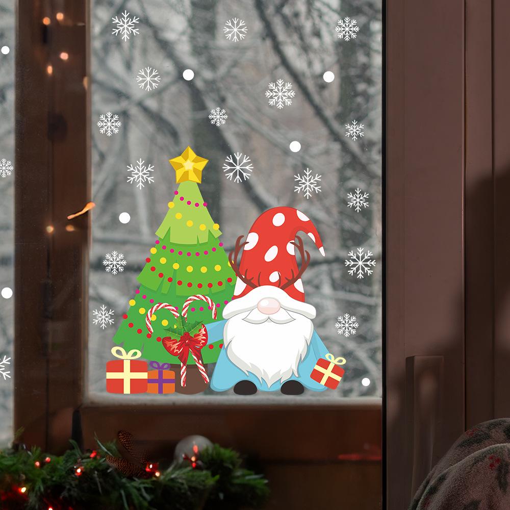Мультяшные рождественские гномы Рождественская елка Снежинка Подарочная коробка Стеклянные окна Наклейки на окна