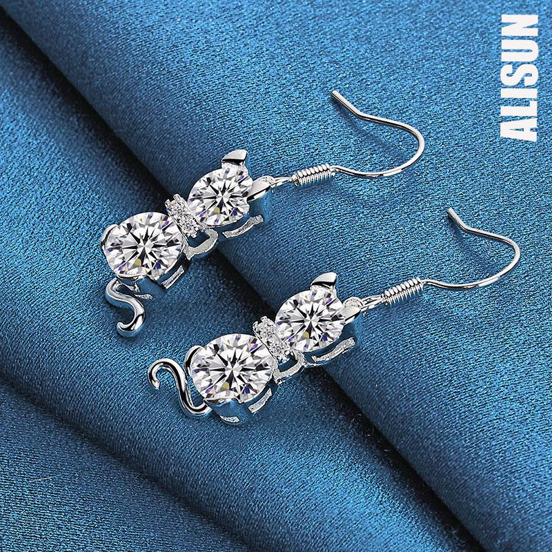 Серьги-подвески для пирсинга Cat AAA из стерлингового серебра 925 пробы с цирконием, модные свадебные украшения