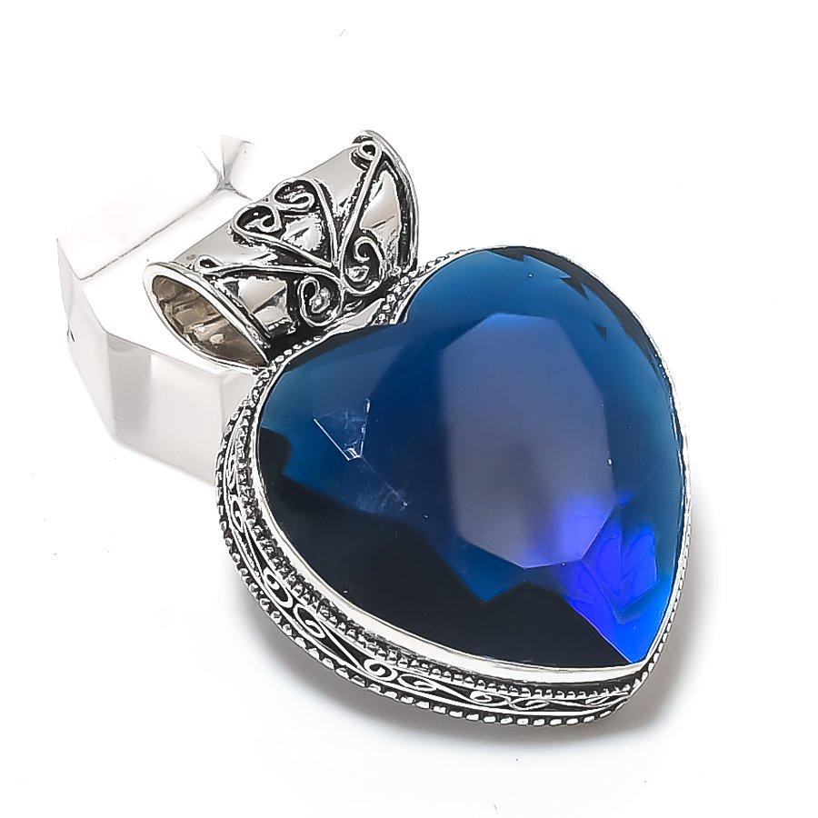 Подвеска из стерлингового серебра 925 пробы с натуральным голубым топазом 1,73 дюйма